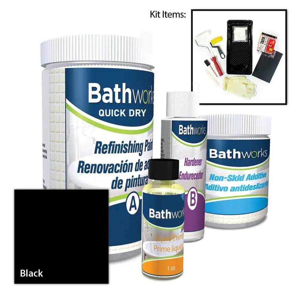 Bathworks 22 oz. Quick Dry in Black with Slip Guard Bathtub Refinish Kit, High Gloss Black