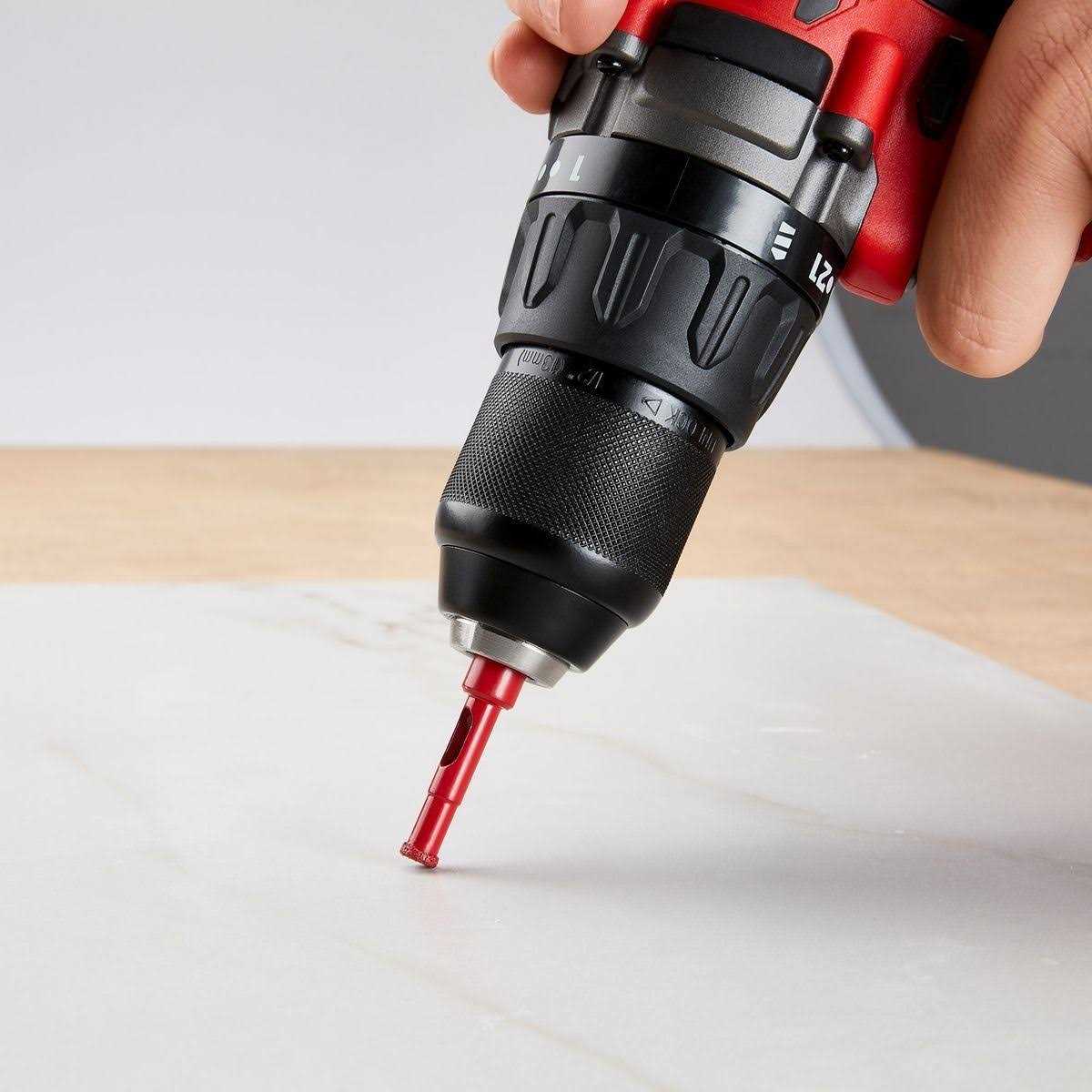 The BAUER Diamond Hole Saw delivers longer life for cutting holes in tile, stone, glass, granite, and brick. Engineered for performance, this diamond hole saw features a side ejection slot, tri-flat shank for secure bit retention, and continuous rim for chip-free cuts. Constructed with high grade diamond grit for effortless cutting and improved durability in tough applications.