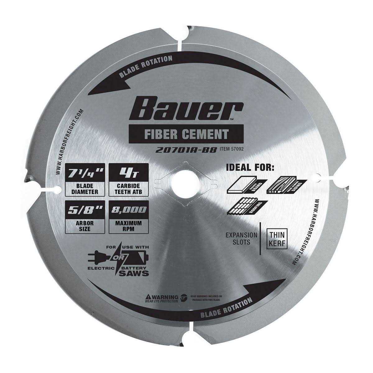 Bauer 7-1/4 in., 4T PCD Fiber Cement Circular Saw Blade 57092