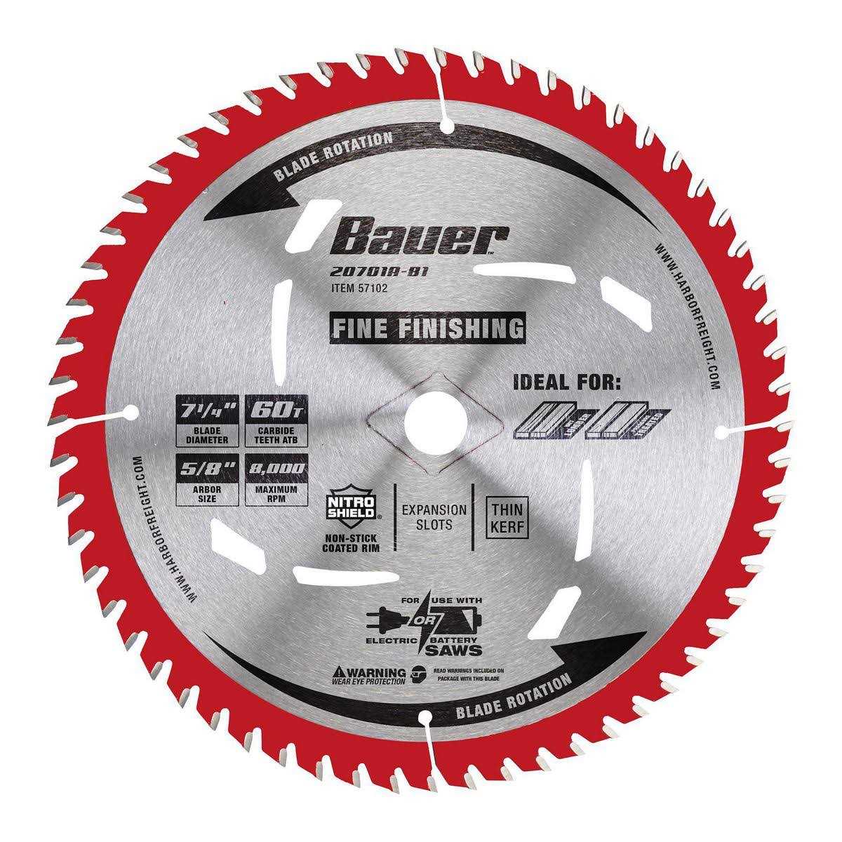 Bauer 7-1/4 in., 60T Fine Finishing Circular Saw Blade 57102″
