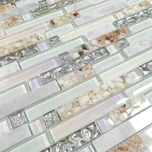 Title: Beach Style Wall Tile Mosaic Kitchen Backsplash Tiles Green Bathroom Silver Glass Conch Stone White Marble Iridescent Mosaic Art Deco Sheets [Pack of 11PCS(12.4×11.8×0.31 Inches/Each)]. Product Type: Categories > Building Supplies > Building Materials > Tiles > Stone Tiles > Marble Tiles
