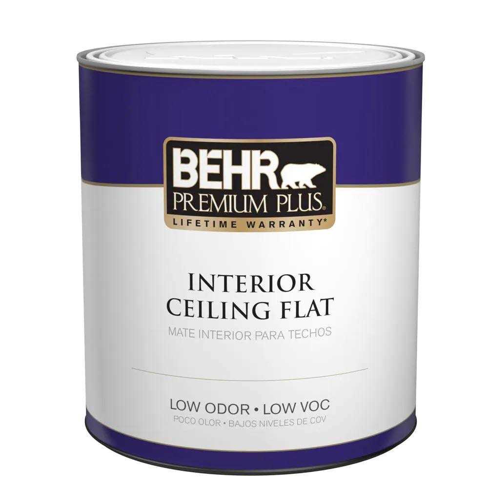 The BEHR PREMIUM PLUS Ceiling Paint features a durable, acrylic-latex formula that is specifically designed for use on previously painted or primed interior ceilings. This spatter resistant formula minimizes glare and provides a mildew-resistant finish. This formula also maintains the original acoustical ceiling properties. Color: Ultra Pure White.