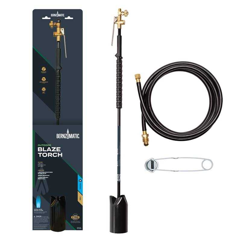 The Bernzomatic Outdoor Blaze Torch features a powerful 500,000 BTU output flame, ideal for burning brush, lighting campfires, driveway repair, thawing ice, and roofing projects. Built to last, this torch is compatible with standard 20 lb refillable propane cylinders and is an excellent choice for construction sites, agricultural settings, and outdoor projects. The 61″ hose provides flexibility and extended reach for a variety of projects. The Bernzomatic Outdoor Blaze Torch includes a spark lighter for manual ignition.