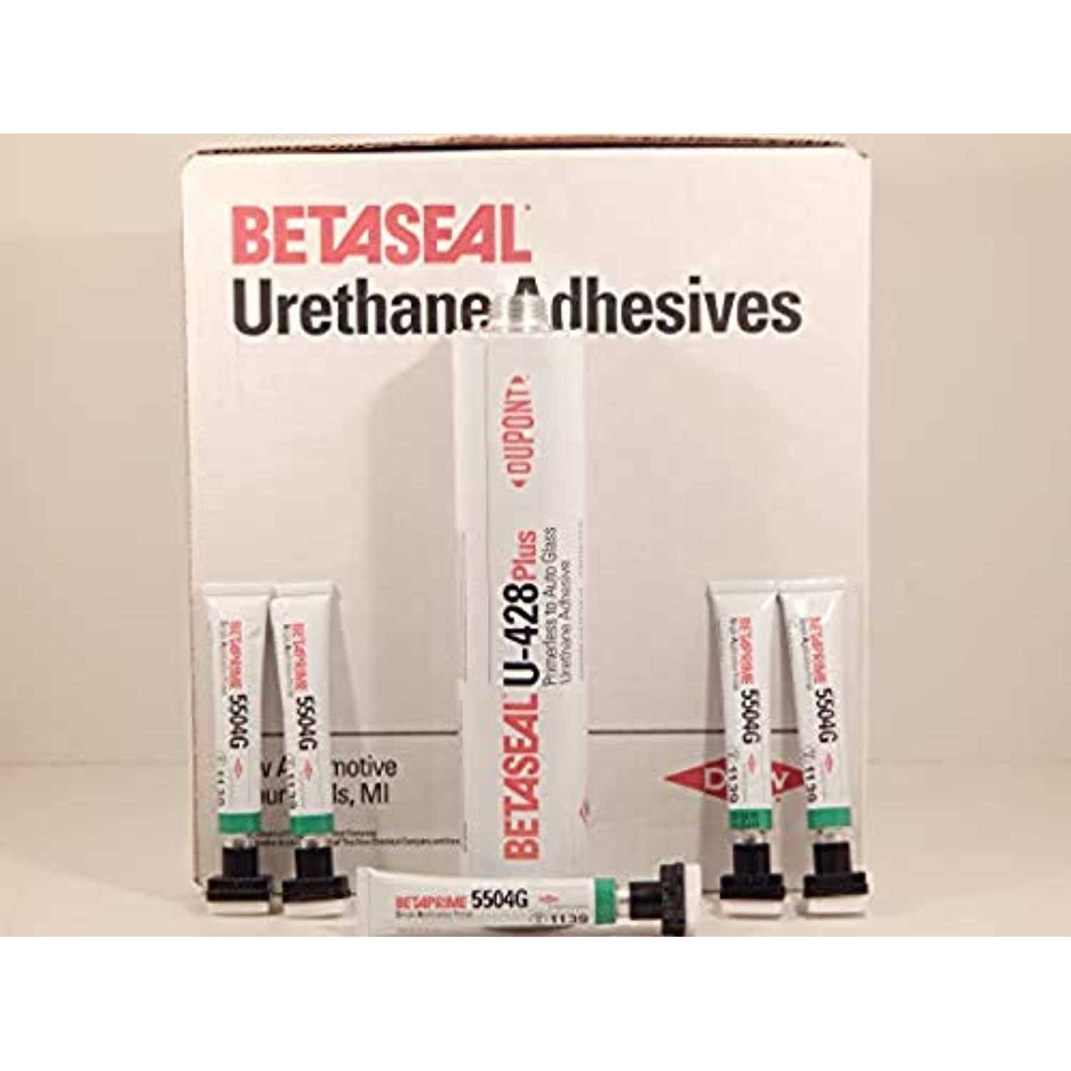 U428 Quick Cure Automotive Urethane Adhesive Betaseal 10 oz. Tubes BLACK 10 ml Single Application Primer Stick Great adhesive product for most materials, waterproof, superior bonding Professional use product. *Seller highly recommends buyer use a qualified glass installer for use of this product. A Dupont Chemical OEM product For use on all auto glass installations Primerless urethane – no primers to glass required meets all federal retention and roof crush tests.