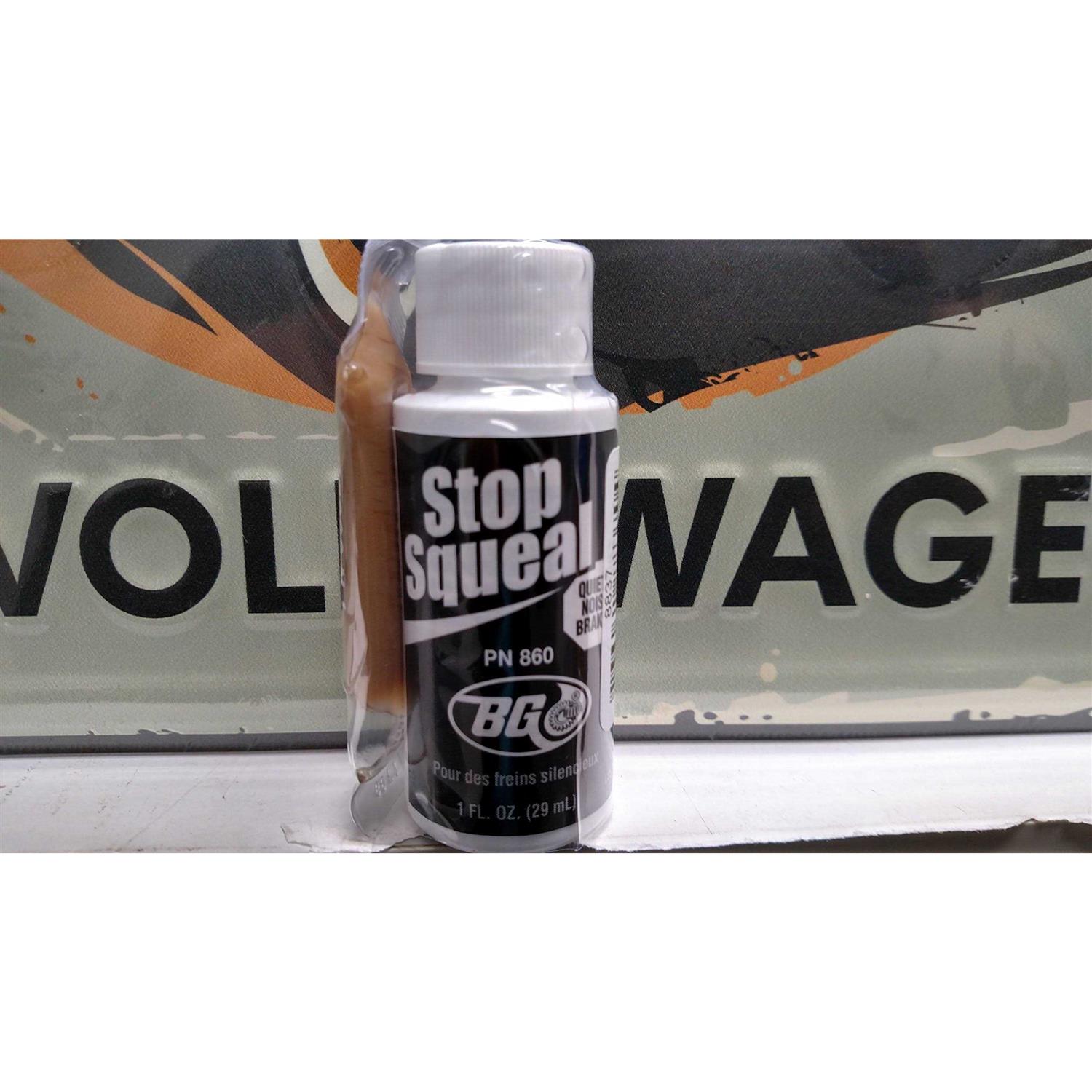BG Stop Squeal eliminates annoying, whining, or squealing brakes. Brake noise can be caused by: Loose or worn brake pad components vibrate Excessive friction from stuck brake calipers As part of the BG Stop Squeal Service, BG Stop Squeal is a safe and effective product for eliminating or preventing brake noise by infusing the brake pad with ingredients that reduce sticking between the pad and rotor. When pressure is applied, the vibrations are significantly reduced, thus brake noise is stopped.