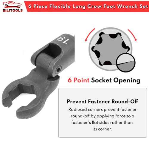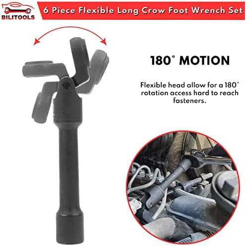 BILITOOLS Long Flex Head Crows Foot Line Wrench Set, 3/8″ Drive Injector Fuel Line Crowfoot Flare Nut Socket Wrench Metric 12-19 mm