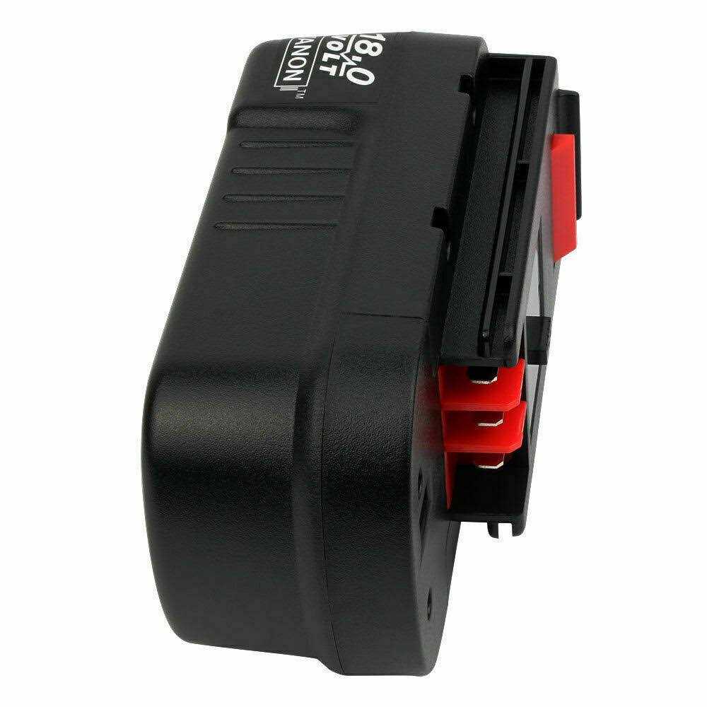 Snap-In Energy In A 18V Slide Battery Pack Whether you’re straightening out the yard putting serious work into the house or just want to be ready when that repair or job comes knocking always have the power on hand to finish the job right with the Black and Decker 18v slide battery pack. The 18v Single Source System puts long lasting energy in your hands whenever you need it. And keep a spare 18 volt battery in the charger so you’ll be ready for anything. Add this powerful battery to your tool kit and see how having one small extra battery makes a huge difference no matter which job you’re planning to tackle. Featuring a quick-change slide-in system loading the Single Source 18 volt battery into your tools takes seconds so you can switch between multiple tasks and activities without wasting time. Forget about dragging a cord around the yard or trying to get the perfect mixture of gas and oil just slip in a battery and get to work. No matter if you have hedges to trim weeds to whack dead limbs to take down or just want to get your pathways clean the Black and Decker 18V slide Battery Pack gives you the energy you need in any corner of your yard. And built tough you’ll get thousands of hours of work out of these durable nickel-cadmium batteries. So don’t get tangled in cords or risk spilling gasoline all over the garage. Give yourself the portable on demand power that you need whenever you need it. Add an extra Black and Decker 18v slide pack battery to your tool shed today and get the ready-to-go power that’ll get more done weekend after weekend.