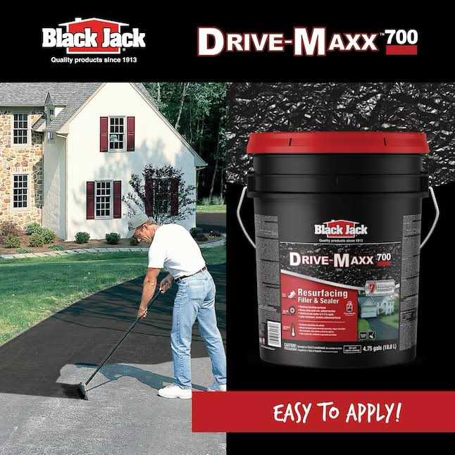 Black Jack Drive-Maxxâ†̨Ā¢ 700 is a better quality rubberized blacktop filler and sealer designed for asphalt pavements. This product renews the look of old worn driveways and contains sand particles to fill in small cracks. Drive-Maxxâ†̨Ā¢ 700 is enhanced with latex to improve performance and durability. Gel Technology enables faster and easier installation.