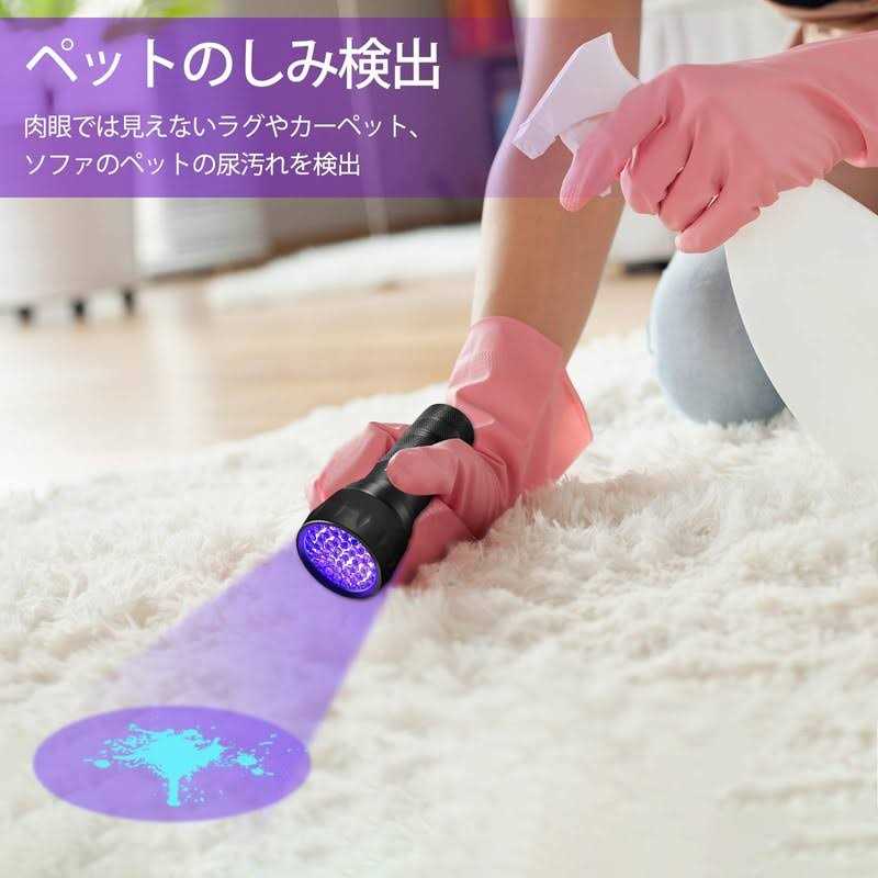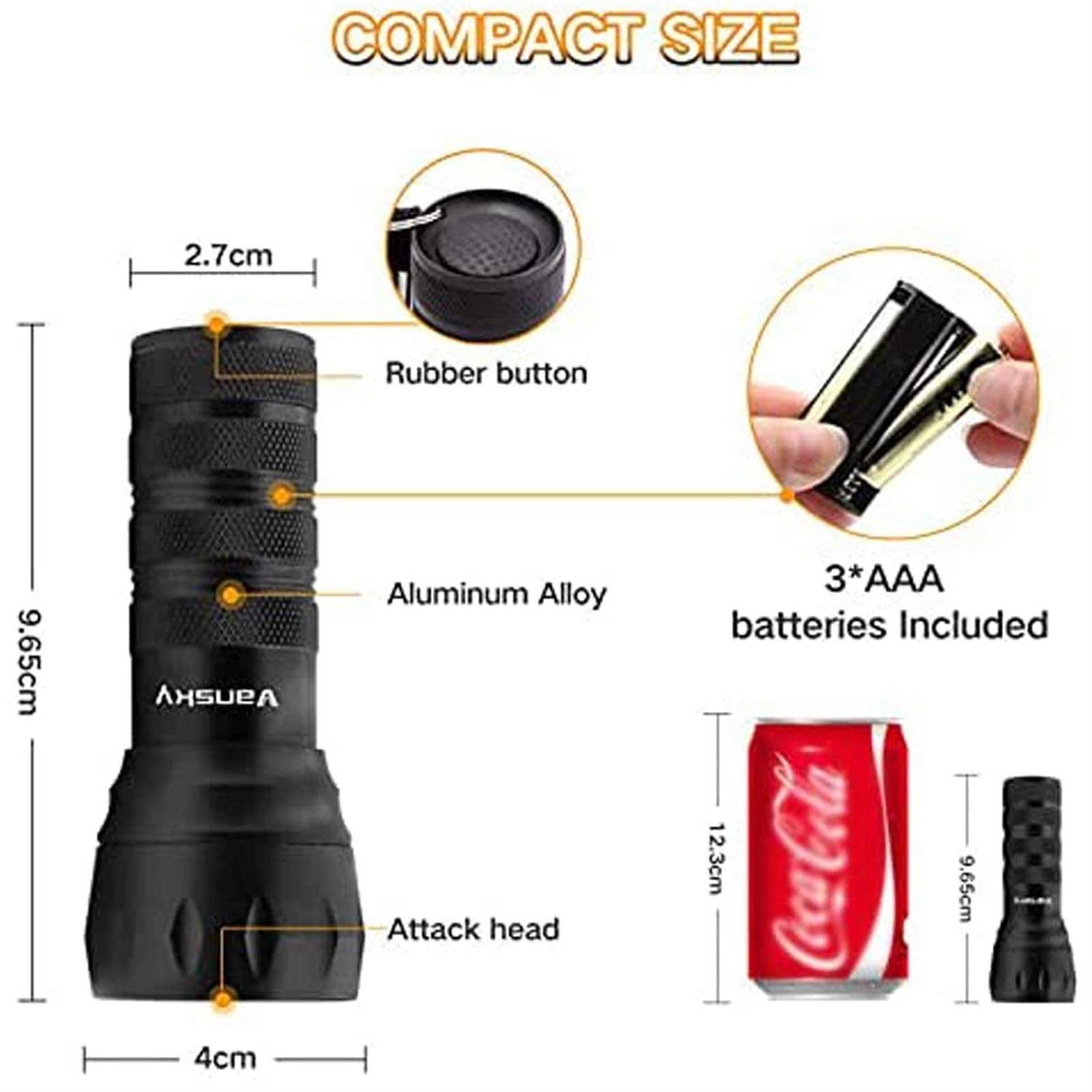 upgraded uv flashlight Find invisible stains– Vansky 21 LED UV flashlight is designed for detecting Dry Dog, Cat and Rodent Stains and unfavourable Spots that Couldnt See With the Naked Eye. Easily Spot Scorpoints at night, Authenticate currency,Driver license,Official Identification cards,Passports. It can also act as Nail Dryer. 395 nm Wavelength– The Black Light Emits 395nm wavelength with 21 top quality ultraviolet LED, each LED lasts up to 12 years. Heavy Duty Aluminium Alloy for this Blacklight Flashlight URINE DETECTOR. Ultra-compact design– The pocket-size UV flashlight can be carried along to detect stains in your car or illuminate minerals, body art Can only spot dried urine stain;. Does not work on reflective surface or carpet with fluoresce;. The ultraviolet led blacklight works best in dark environment, the darker it is, the better it works;. For few dark color carpets, the reflected stain color will be very close to the color of the carpet, making it harder to see;. Remove all batteries if you did not intend to use it for a long time.