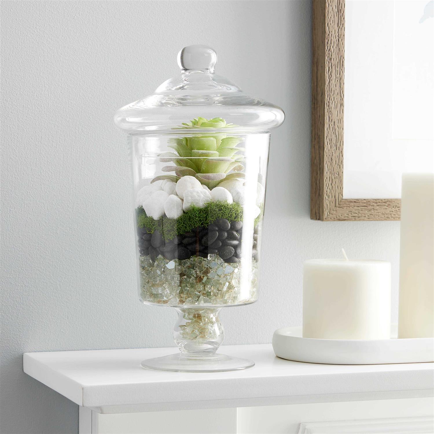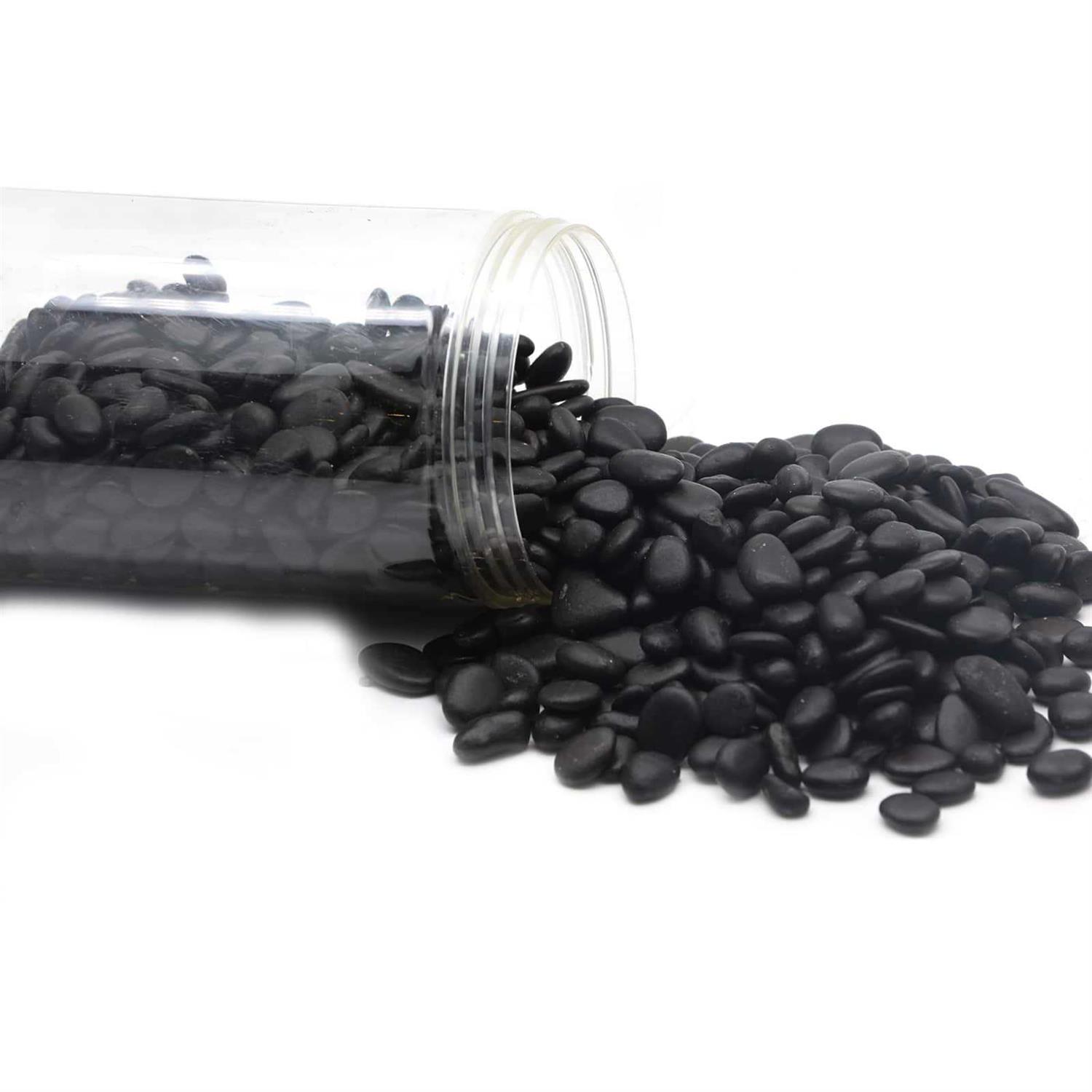 Add a naturalistic vibe to your fairy garden pathway and potted plants with these decorative black river pebbles. Add a naturalistic vibe to your fairy garden pathway and potted plants with these decorative black river pebbles. You can place them in your tabletop water fountains for a calming effect, or use them as fillers in vases, terrariums, and more. Details: Black 40 oz.