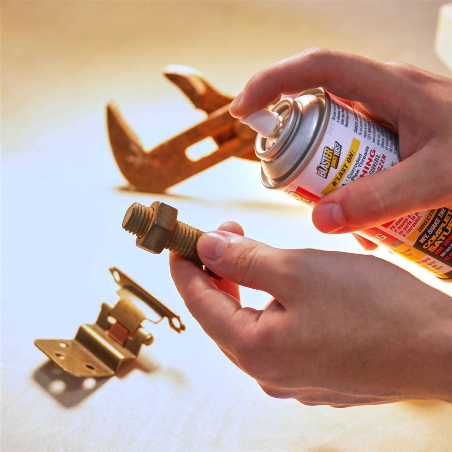 The PB Blaster acts as a powerful, concentrated catalyst to release the surface tension of frozen parts. Then it converts into a nonevaporating lubricant to protect against further rust and corrosion. Penetrates fast into hard-to-reach cavities to free stubborn, rusted, or immobilized parts; nuts, bolts, screens, joints, pipe threads, and more. Contains no dangerous vinyl methylene chlorides, gasoline, kerosene, fuel, or cheap oils.