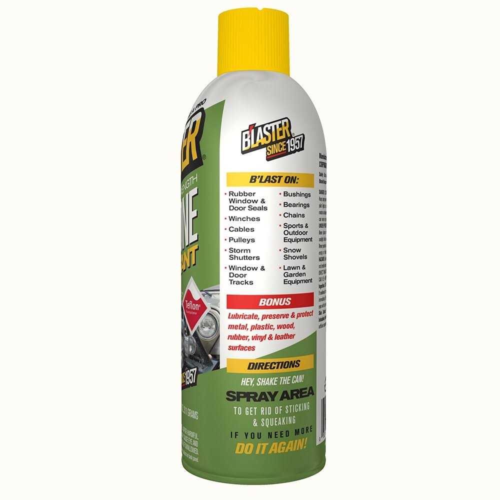 Blaster Silicone Lubricant contains a higher concentration of silicone than competitive brands, which provides longer-lasting lubrication. It’s clear, non-evaporating formula eliminates wear from constant friction and is safe and non-staining. This is the perfect household lubricant, because the premium formula wont accumulate dust and dirt as it eliminates squeaks and sticking. Ideal uses include indoor window panes, door hinges, and sticking car doors. Can also be used on lawn equipment, sporting goods, and snow shovels to allow for an easier shoveling experience!