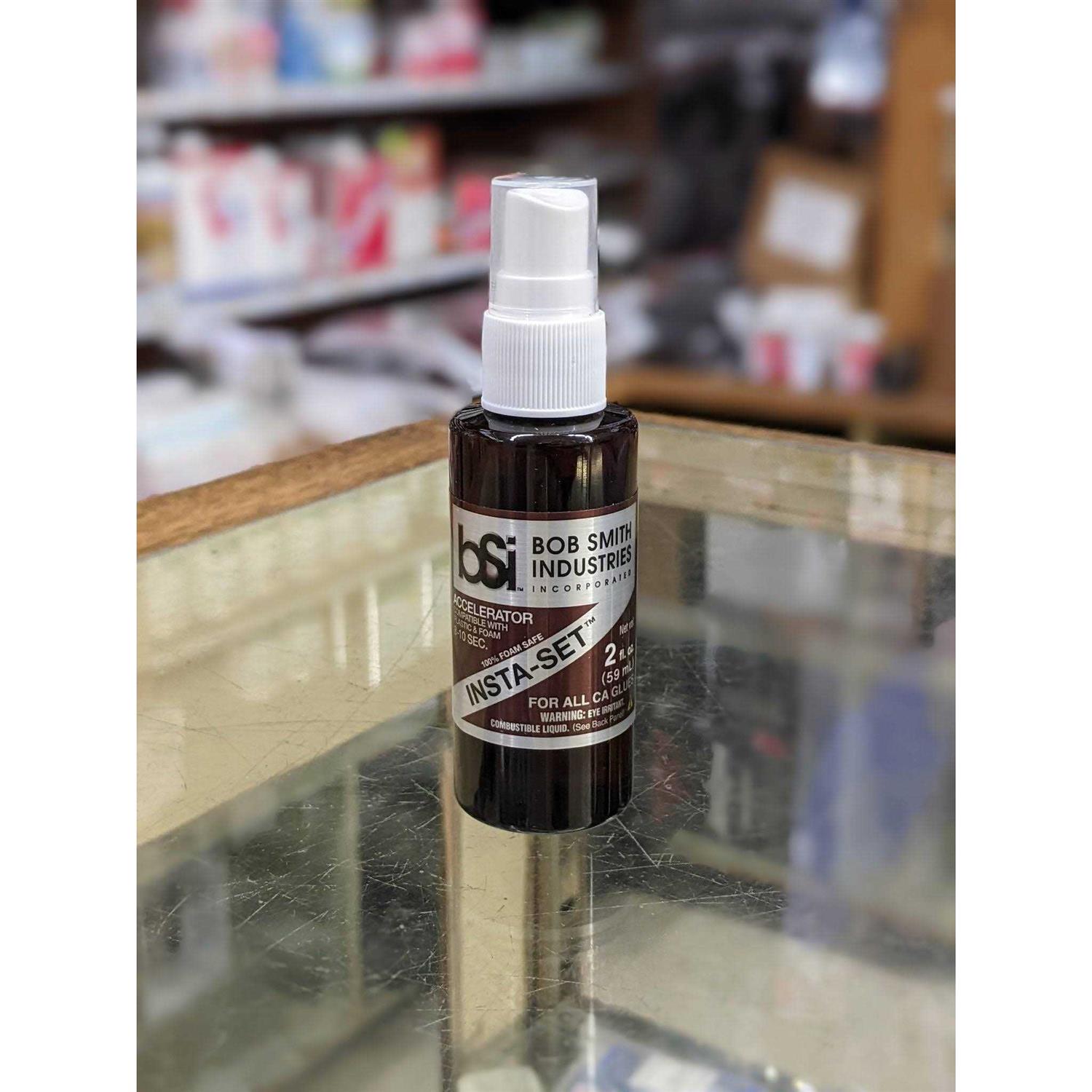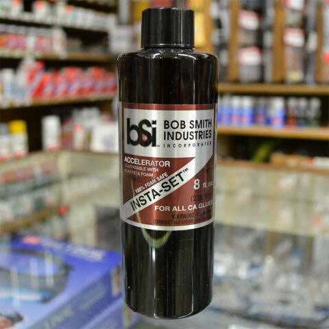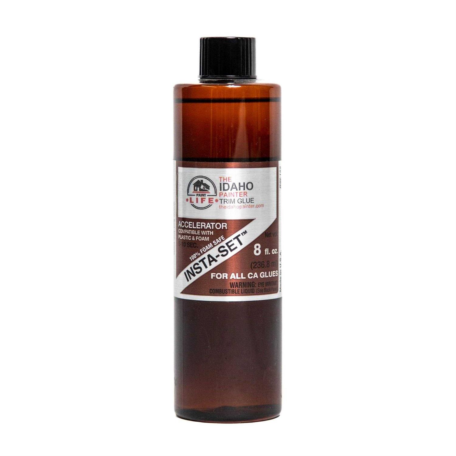 Keep your army strong with ArmsKeeper Glues! INSTA-SET is a catalyst which acts as an accelerator that allows CAs to quickly cure in thick layers by enhancing the alkaline conditions during polymerization. INSTA-SET in a spray bottle is normally used to cure the CA that flows from joints when parts are pressed together. Applying an additional bead of thick CA along a seam and then curing it with INSTA-SET significantly enhances a joint s strength. For difficult to bond materials, INSTA-SET can be applied to one surface and CA to the opposite surface. When brought together, they will bond instantly. INSTA-SET is formulated with a strawberry scent and activates CA in 6 to 8 seconds without any degrading of the CAs strength, which can occur with many other accelerators. It is compatible with all surfaces, even clear plastic and white foam.