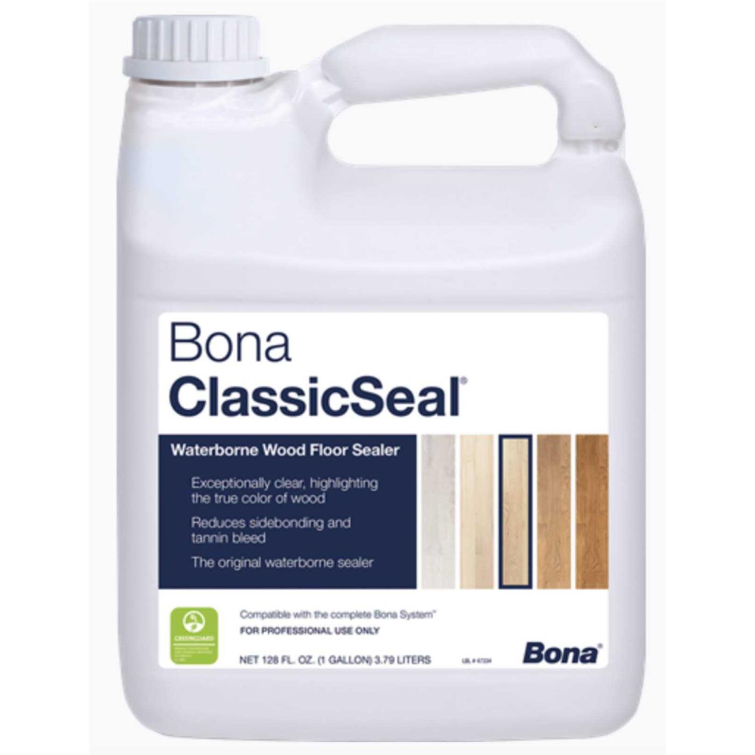 Bona ClassicSeal is an exceptionally clear waterborne sealer that highlights the natural color of the hardwood floor. This waterborne sealer provides a build layer and prevents the finish from penetrating into the wood surface. Bona ClassicSeal wood floor sealer is specially formulated for use with Bona Naturale, Bona Traffic, and Bona Mega hardwood floor finishes. Bona ClassicSeal seals the hardwood floor, minimizes grain raise and provides a build layer.