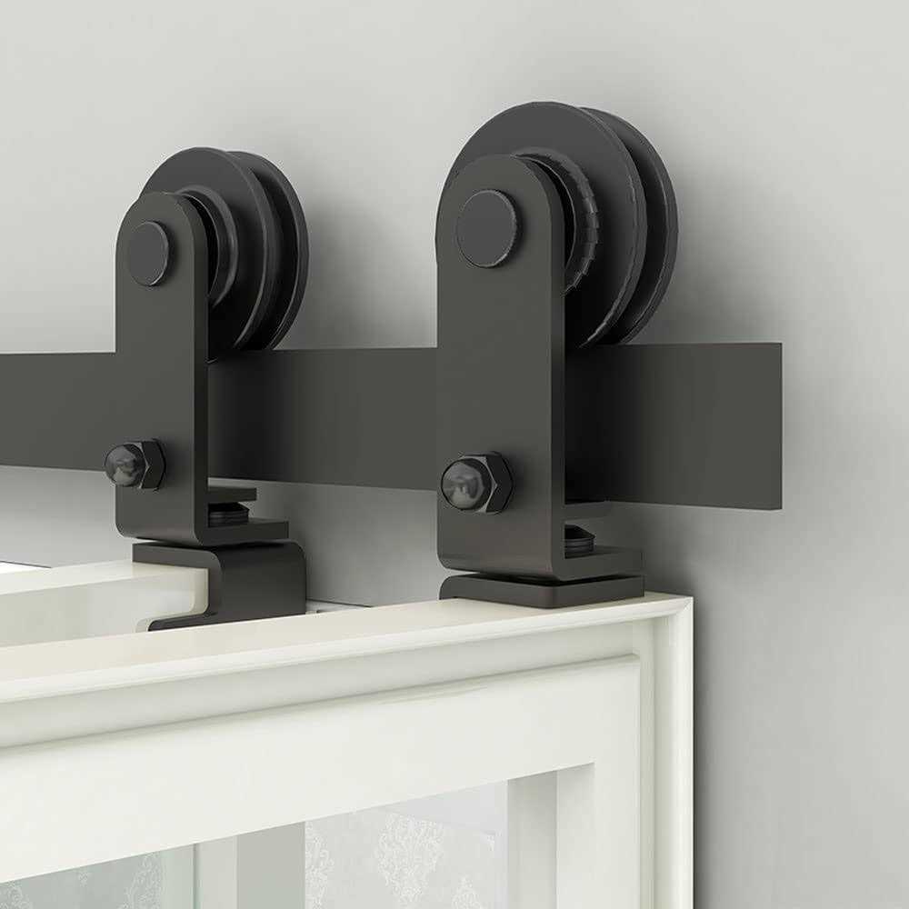 BONIKLUBA Bi-Folding Sliding Barn Door Hardware Track Kit,Smoothly&Quietly,Top Mounted Black Roller,Easy Install,Door Not Included