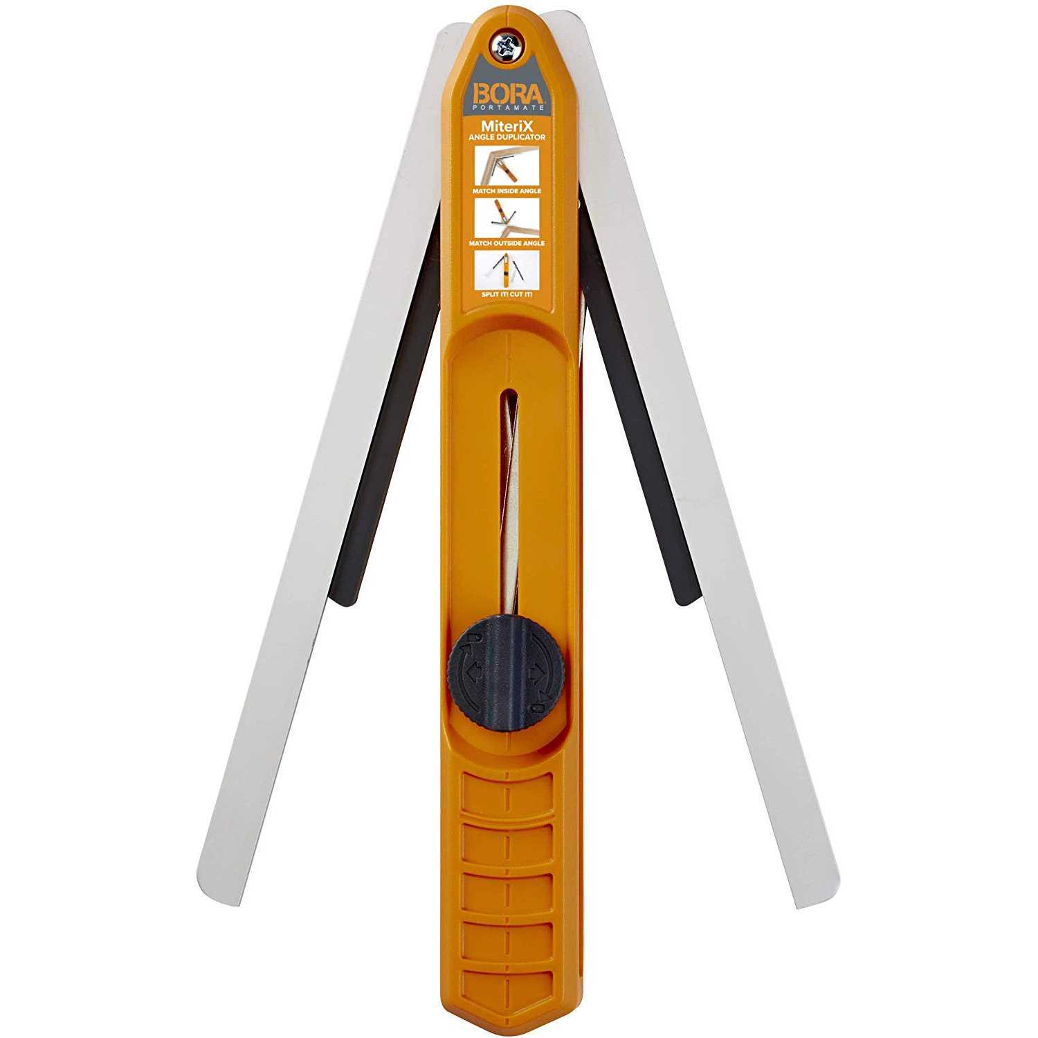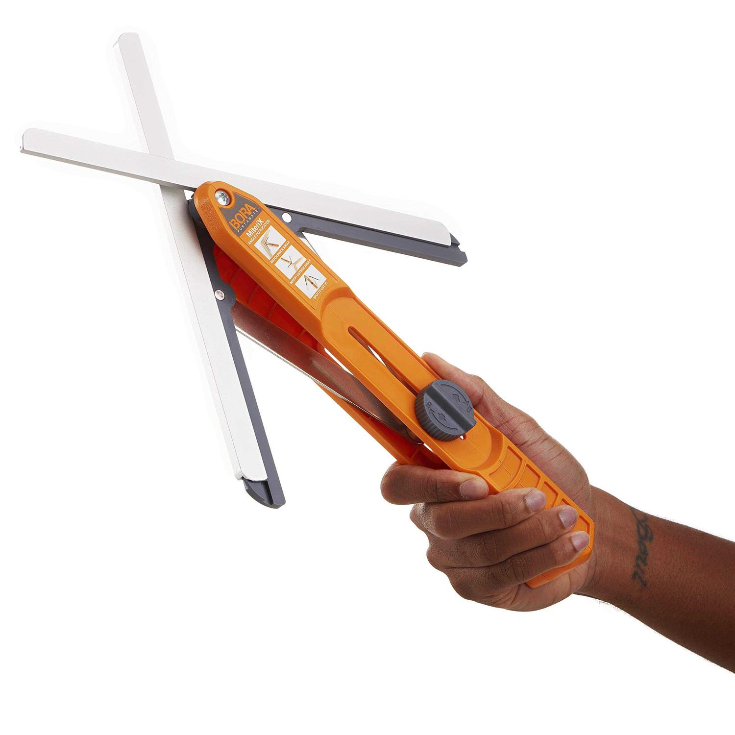 One of the harder parts of carpentry and DIY projects is getting precise angles. With the Bora MiteriX Duplicator Tool, it becomes the easiest part of the job. This tool does exactly what you think it does ï¿1⁄2 it precisely measures angles, than locks the angle (and even splits in half) to transfer that exact angle to your miter saw. This means your miter cuts will match precisely, without that unsightly gap that is all too common when measuring freehand. The great part about this is you can measure an existing angle on a piece of furniture, a corner in another room, etc, and then transfer that exact angle to your miter saw. So, for example, if you’re cutting crown molding, cornice molding, wood casing, base board, or trim for an existing piece, stair case, wall, and the angle you need isn’t a perfect-preset angle, this tool will save you hours of frustration, and will ensure you cut it right the first time.