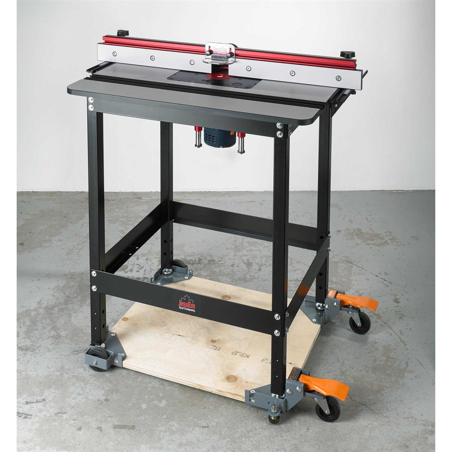 Machines stay out of the way until needed freeing space for large projects. You will be able to make the most of the space you have for greater efficiency better organization and the added convenience during cleanup. Move bandsaws table saws sanders drill presses jointers planers workbenches and much more. The Plywood Mobile Base Kit works with any thickness of plywood up to 1-1/2″. It is easy to assemble and there is no size capacity limit fitting virtually any large woodworking machine. Corner wheel pieces with predrilled holes sandwich your plywood to insure the perfect fit for your machine. 3″ diameter wheels at all four corners make it easy to maneuver while foot-operated levers lock machines to the floor. All components feature a durable power-coated finish. The PM-1100 has a maximum weight capacity of 400 lbs. Roll one tool in; roll another tool out. Perfect for workshops garages or anywhere mobile machines make sense. Assembly hardware included; plywood sold separately.