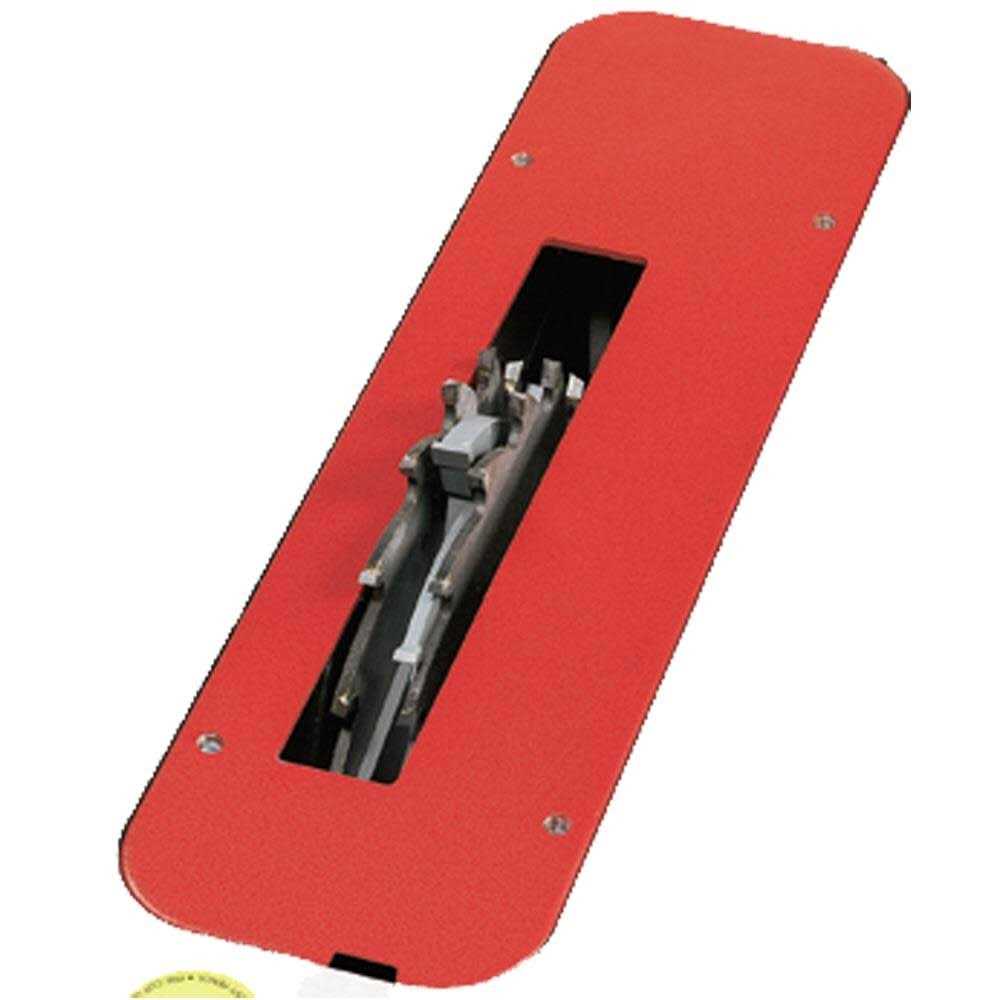 This dado insert for the table saw is made of steel and measures 12 length x 3 width x 18 height x inches thickness. It includes a washer for the proper position of dado components. The insert has a red finish and works with stacked dado and rabbet cutters. It is for use with Bosch 4000 and 4100 table saws.