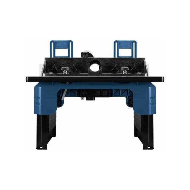Features Features Ultra-portable design features folding legs for fast setup and easy storage Easy Click router mounting system provides easy bit changes and no leveling Laminated MDF top helps users make smooth and precise cuts. Specifications SKU RA1141. Brand Bosch Amperage 15 Volts. 120V. Dust Collection Yes. Max Fence Opening 3-5/8 in. Max Throat Opening 3-1/4 in. Working Length 26 in. Power Corded Length 16.5 in. Width 26 in. Height 14.5 in. Weight 33 lbs.