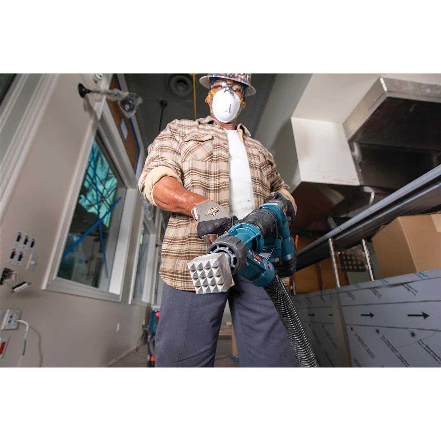 - Accommodates optional dust-extraction attachment – easily works with the Bosch HDC300 attachment