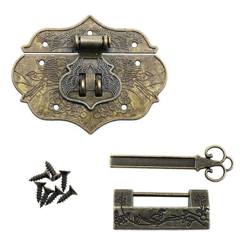 Brass Double Hole Buckle: Made of Zinc Alloy, Strong and Durable. It is engraved with a double bird pattern, which is exquisite and vivid.. Vintage Flower and Bird Padlock: Made of Zinc Alloy. The lock is engraved with flower and bird patterns, elegant and charming. The key design is unique, which is the traditional Chinese way of unlocking.. The Box Latch Hasp and Vintage Lock Kit can be used to make or repair antique wooden boxes, jewelry boxes, gift boxes, wine boxes, decorative cabinets, cabinets, etc. You can also make beautiful vintage crafts by yourself.. Installation is simple, just screw the hasp to the item you want to install. Easy to operate and easy to use.. Package Contents: Vintage Brass Double Hole Buckle with Screws, and Vintage Style Flower and Bird Padlock with Key..,,LUORNG