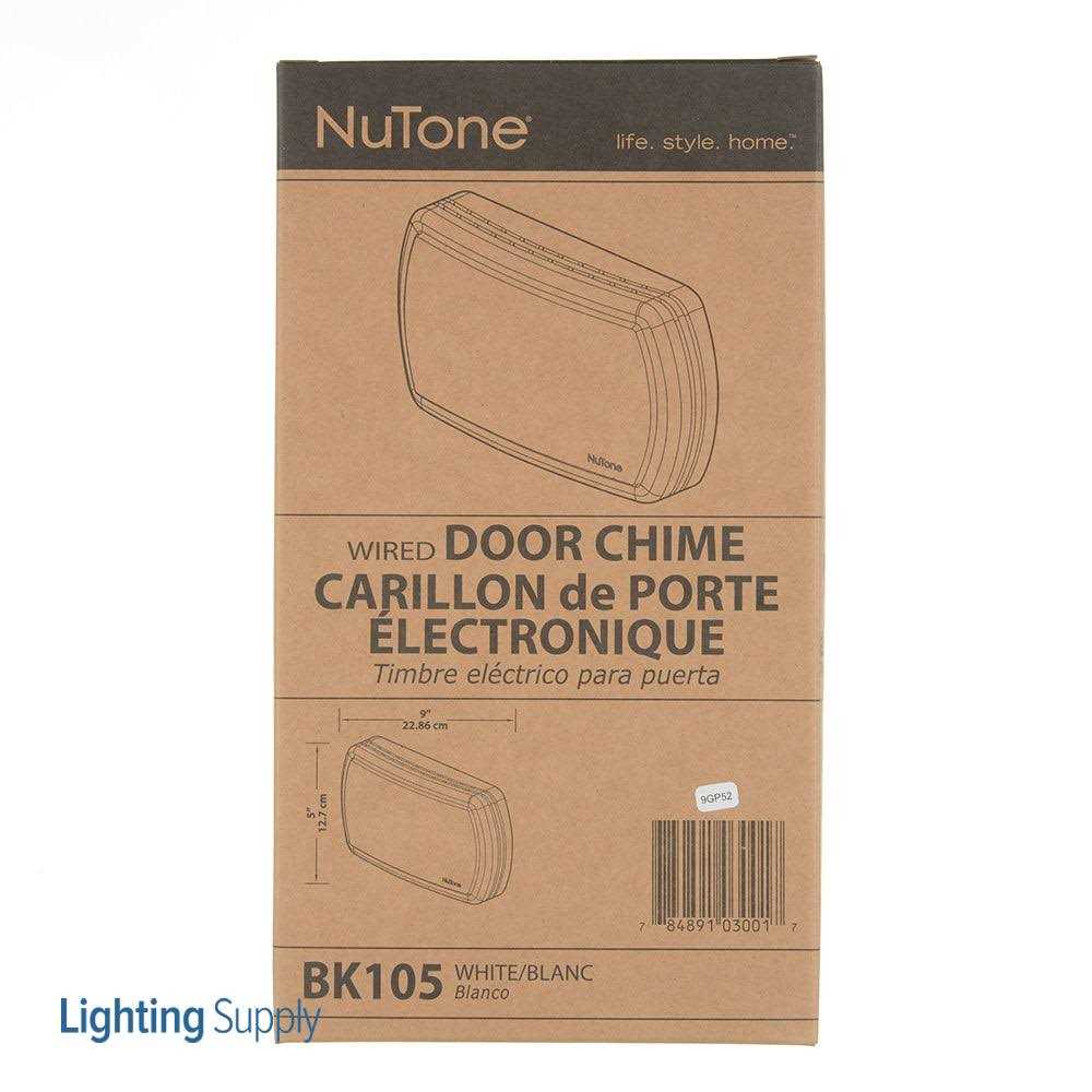 Basic white textured cover for a design that blends with builder finishing techniques for multi-family dwellings For use with two entrances; two-note chime for front door, separate one-note tone for second door so no guest will be missed Chime wires to a 16-volt transformer so you are assured of uninterrupted service and are never dependent upon batteries (use transformer C905, sold separately) Pushbutton sold separately The Nutone BK105 is a builder chimes kit that comes with chime only. This unit wires to a 16volt transformer. It can be used for two entrances ndash; twonote and onenote chime for front and second door respectively. The chime features a basic white textured cover and an elegant, curved design. A pushbutton and transformer are required.