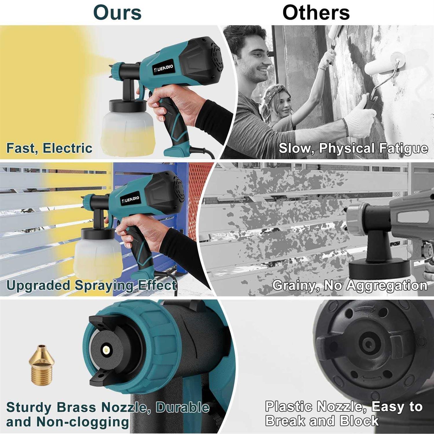 BUENDIO Paint Sprayer 700W High Power 6 Copper Nozzles & 3 Spray Patterns