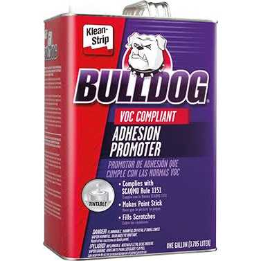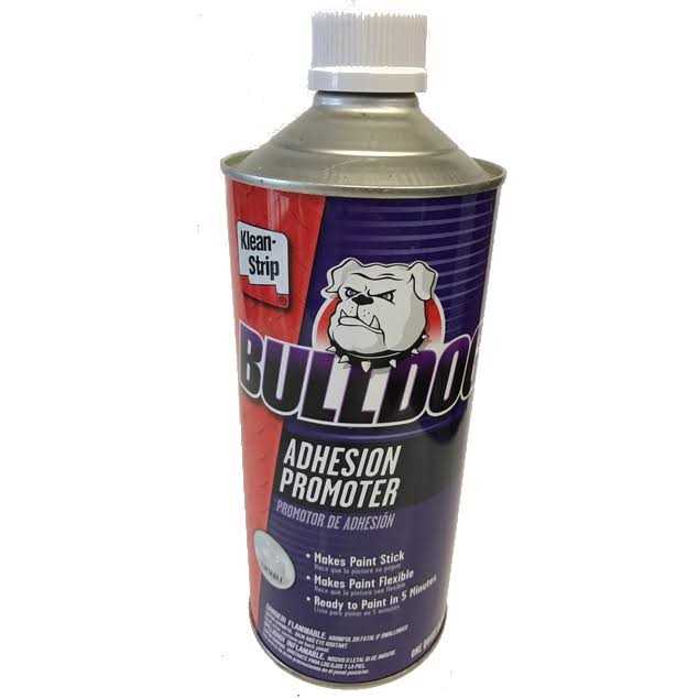 Makes Paint Stick Designed for Spot Repair Ready to Paint in 5 Minutes Part # KLE ETP0123B Bulldog Adhesion Promoter – 15 oz. Aerosol Bulldog Adhesion Promoter is designed to promote paint adhesion to all automotive surfaces, even problem plastics. It works equally well on all flexible or rigid plastics, fiberglass, aluminum, glass, chrome, vinyl, galvanized metal, and painted surfaces. Bulldog acts as a tie coat by allowing several different surfaces to be painted at the same time to assure a smooth, flawless, durable finish every time.