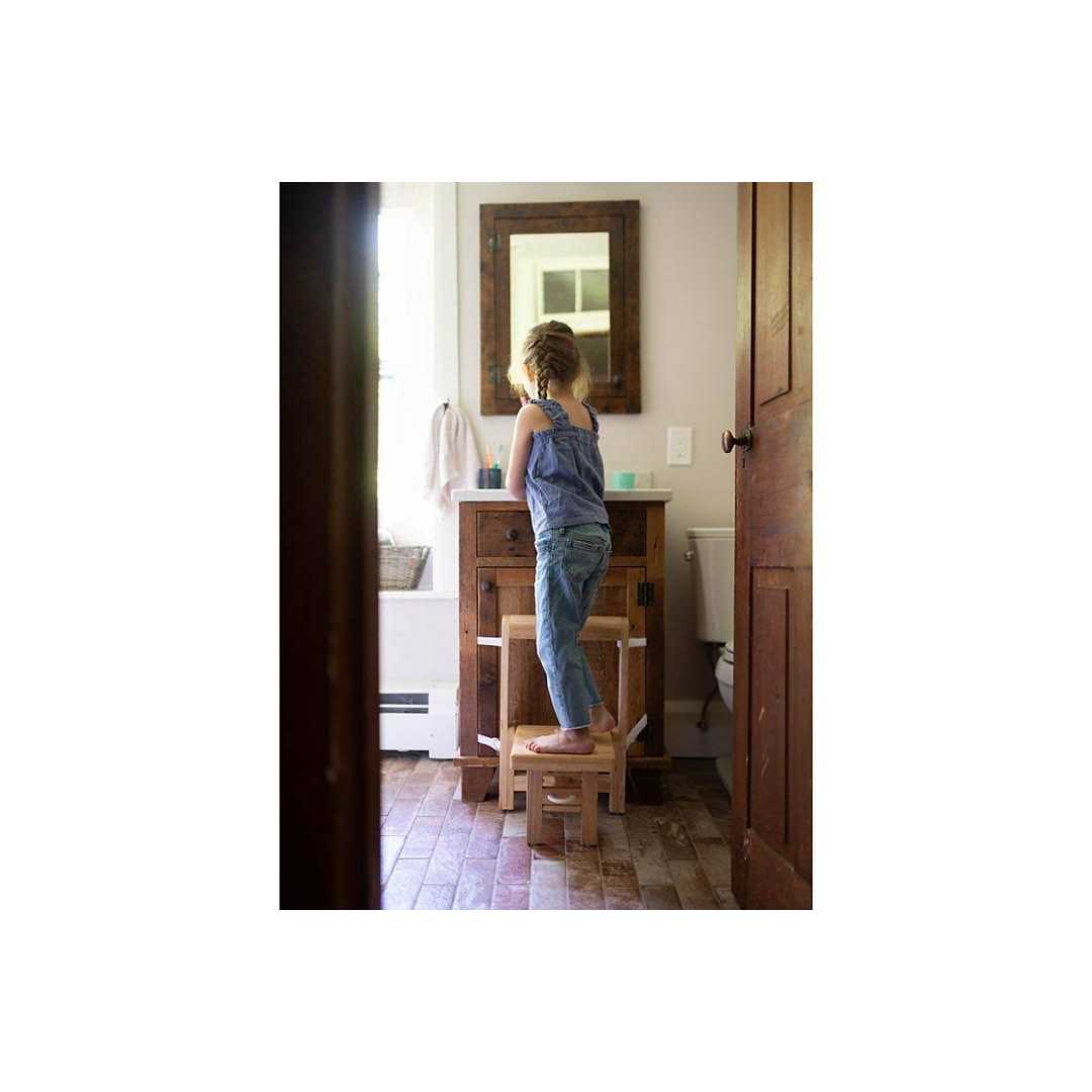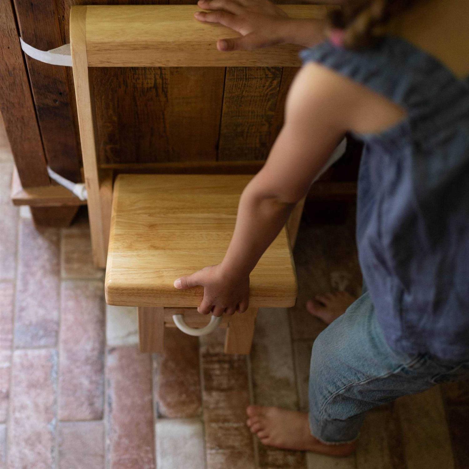 Busy Kids Fold ‘N Store Step Stool is a folding step stool that helps give little ones a boost to help promote their independence. Room-to-room movement is easy with integrated carry handle. Velcro straps to easily attach and remove from the cabinet or vanity. Felt on back to protect cabinet and finish. Solid wood construction for long lasting stability you can count on after years of use. Safety-tested to ASTM Standards. Solid hardwood construction.
