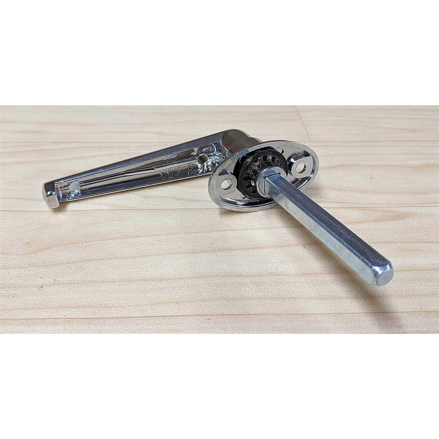 Buyers Products “L” Type Locking Door Handle is surface-mounted and rotates 360° to fit a variety of applications. Chrome-plated for corrosion resistance, the handle can be locked in four positions spaced at 90° apart. Mounting holes are spaced 1-1/2 in. center-to-center and each handle includes key.