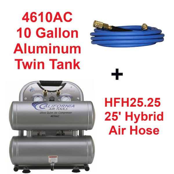 California Air Tools 4610ACH | 4.6 Gallon 1 HP Ultra Quiet and Oil-Free Aluminum Twin Tank Air Compressor Hose Kit