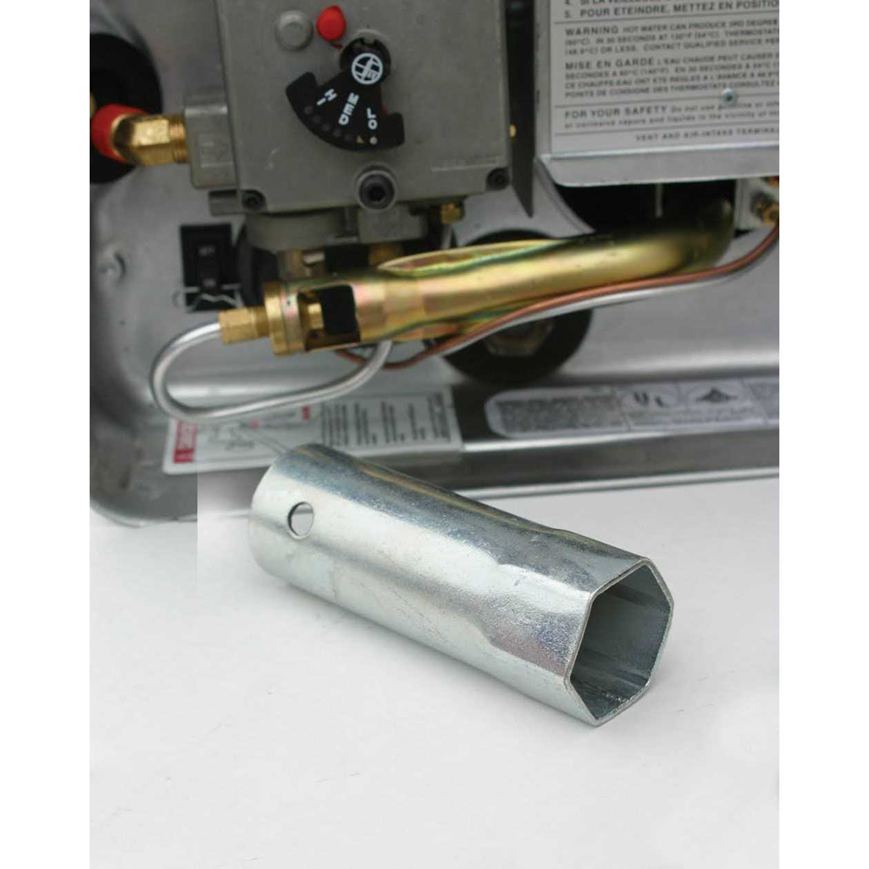 Camco 09883 Water Heater Screw-in Element Wrench Remove and replace screw-in elements with ease. Zinc-plated element wrench goes where other wrenches can’t. Works with your screwdriver and fits all regular screw-in type elements and 1-1/2″ nuts.