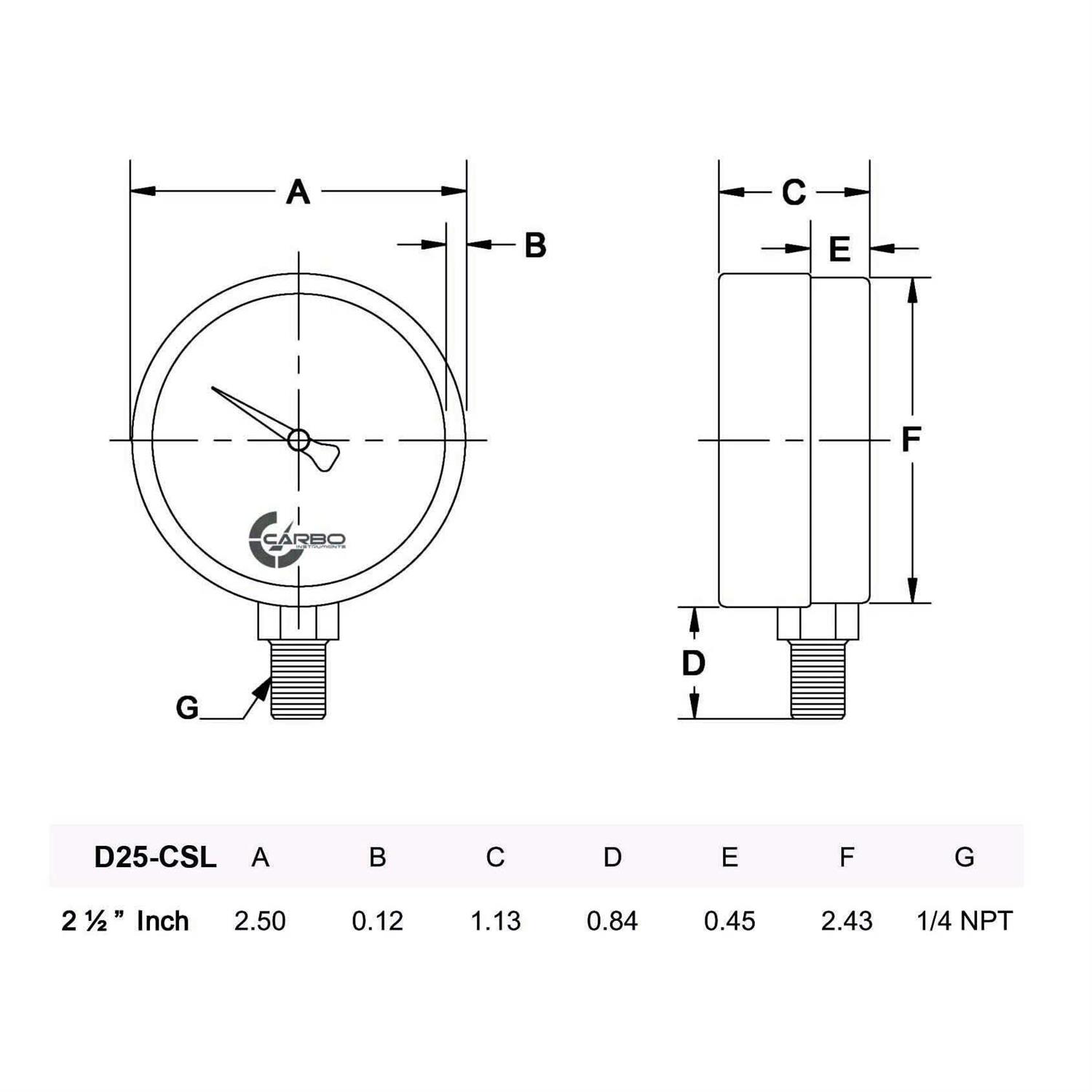 Carbo Instruments 2 1/2 inch Pressure Gauge Chrome Plated Steel Case