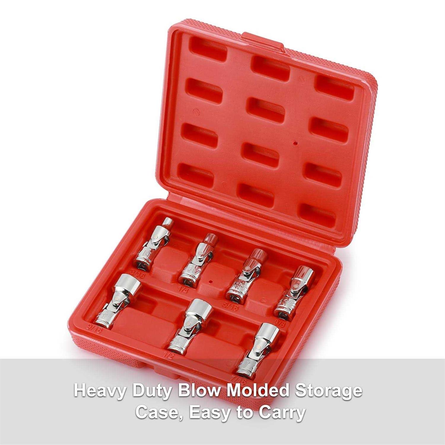 CASOMAN 7pcs 1/4″ Drive Universal Flex Socket Set, SAE, 3/16″ to 9/16″, 6-Point, Cr-v, Swivel Head, 360 Degree Access