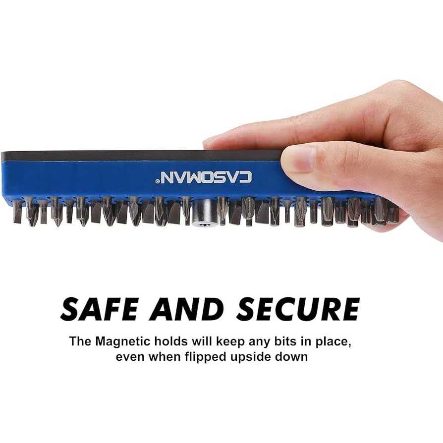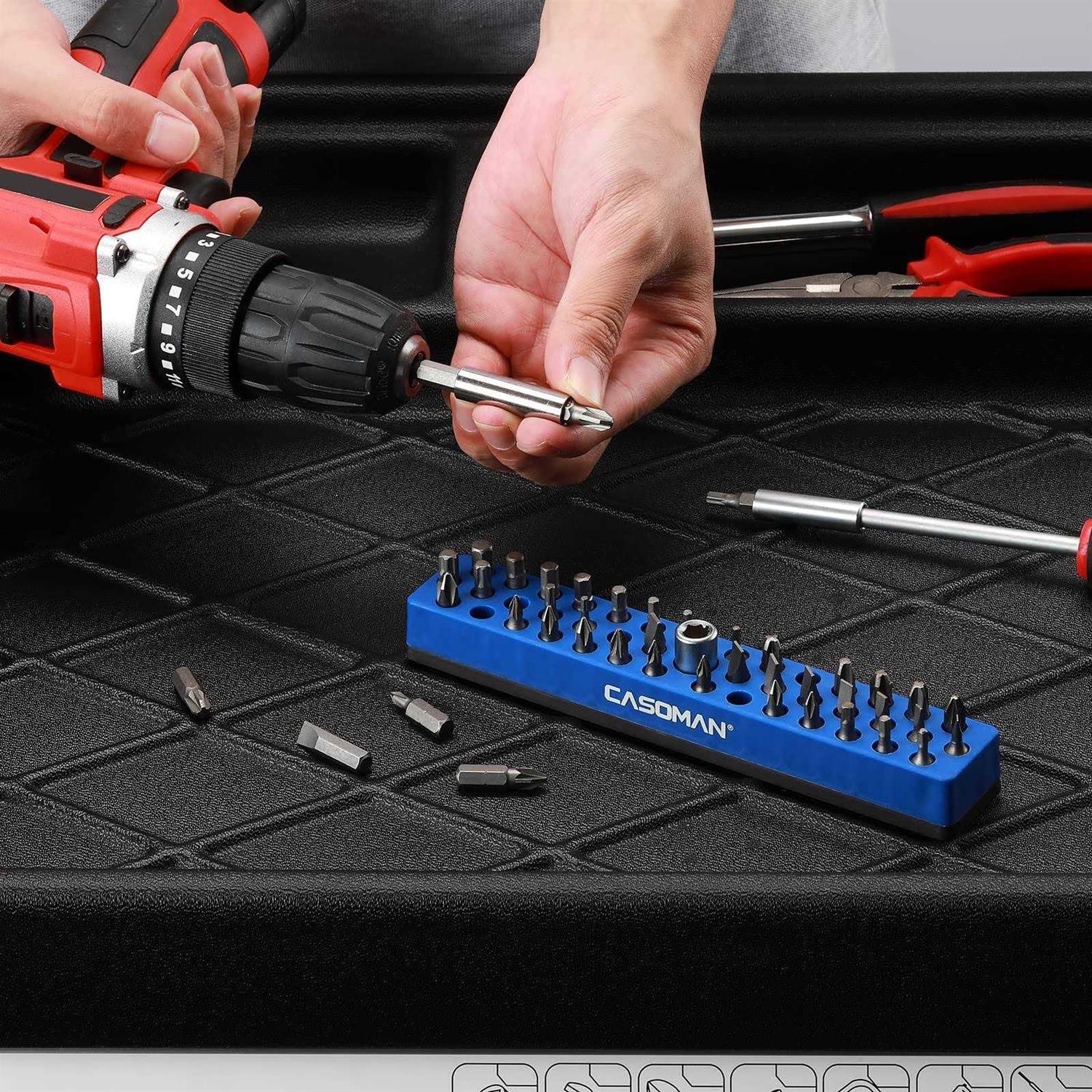 CASOMAN 1/4 Hex Bit Organizer with Magnetic Base Blue Hole Bit Organizer with Strong Magnetic Base