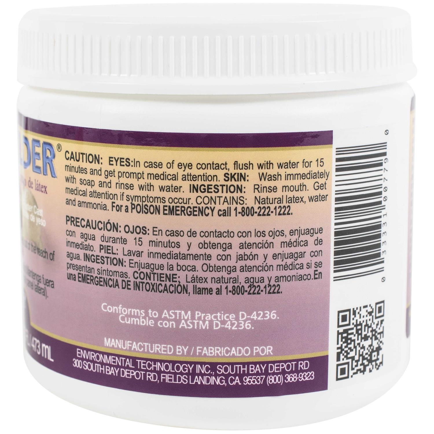 Quick drying, fast build up, economical to use, peels easily from model, flexible and stretchable, harmless to most surfaces! Now you can duplicate figurines, sculptures and other items with safe, brushable latex rubber. Mold Builder will not stick to metal, clay, ceramics, plaster, wood or Plasticine clay. Mold Builder molds are durable, reusable, and economical to make. The molds you make from Mold Builder can be used to cast paper, plaster, candle wax, soap, casting resin or casting epoxy.