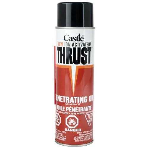 Auto Marine Manufacturing Lawn Equipment Bus This ion-activated Castle Thrust has an affinity for metal that enables it to penetrate deeper and faster than regular penetrating oils. A special blend of lubricants assures constant lubrication and resists high-temperature breakdown, even under the most severe conditions. Castle Thrust foams in order to minimize run-off and keeps more product working on the rusted part, and will not burn off.?