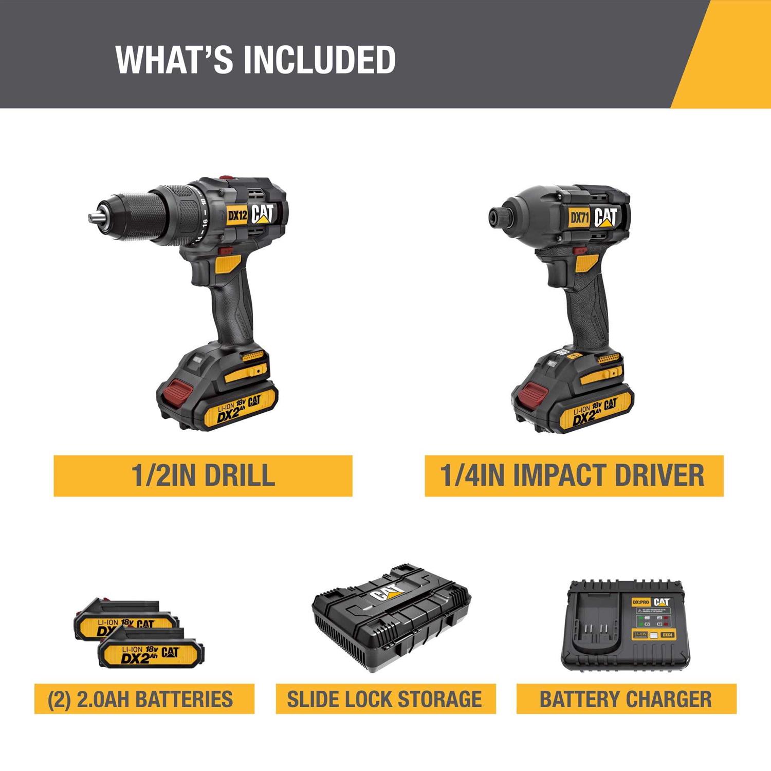 Cat 18V Cordless Hammer Drill & Impact Driver Kit, DX12K