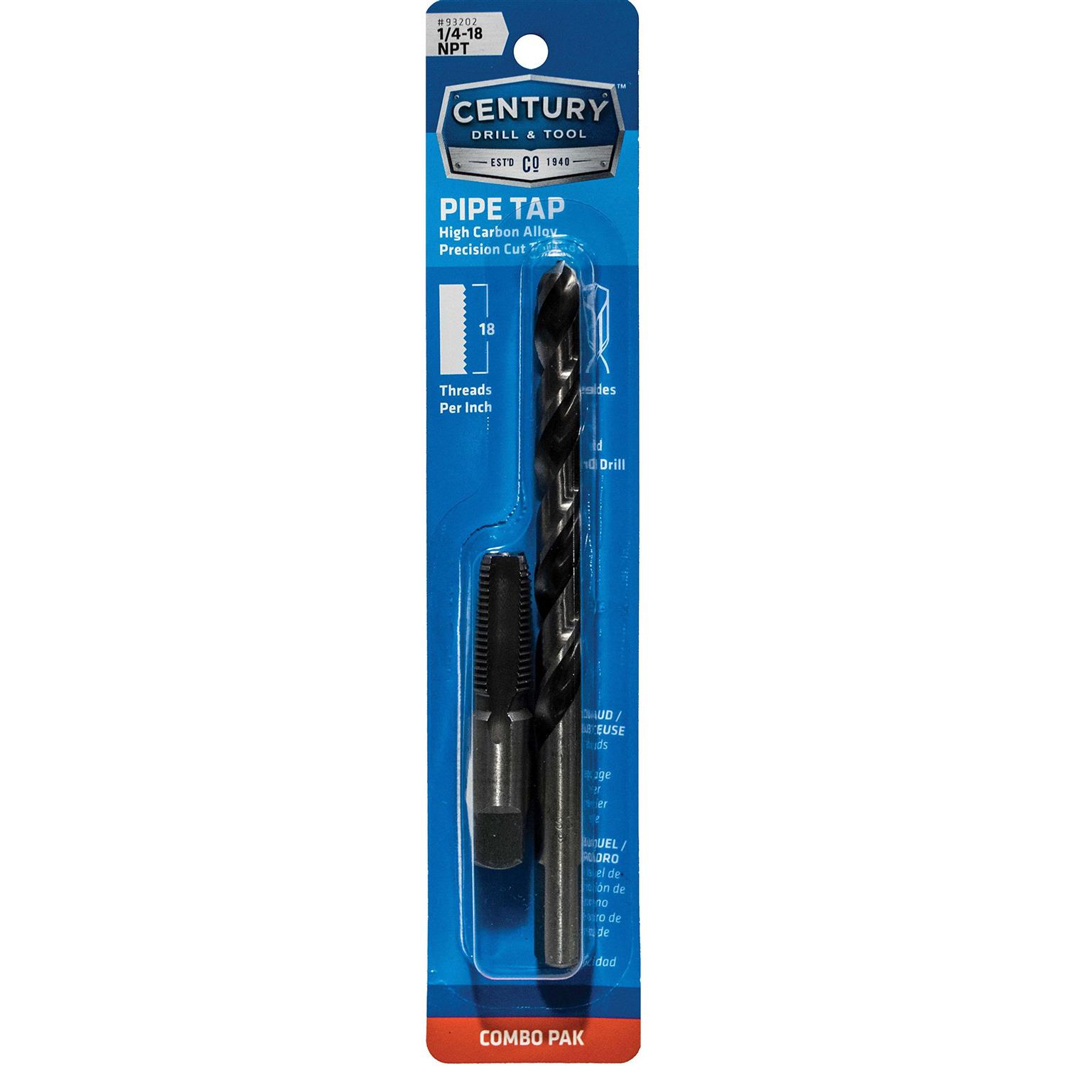 Century’s tap and tap & drill Combo paks offer a convenient solution that provides the correct drill size for the tap all in one package. The tap offers precision cut threads that are accurately formed for consistent, exact treading and is heat treated and tempered for file hard threads for a longer, useful life. All taps are designed for hand applications only. Each drill bit is made of premium grade high speed steel for general drilling in wood, metal and plastic.