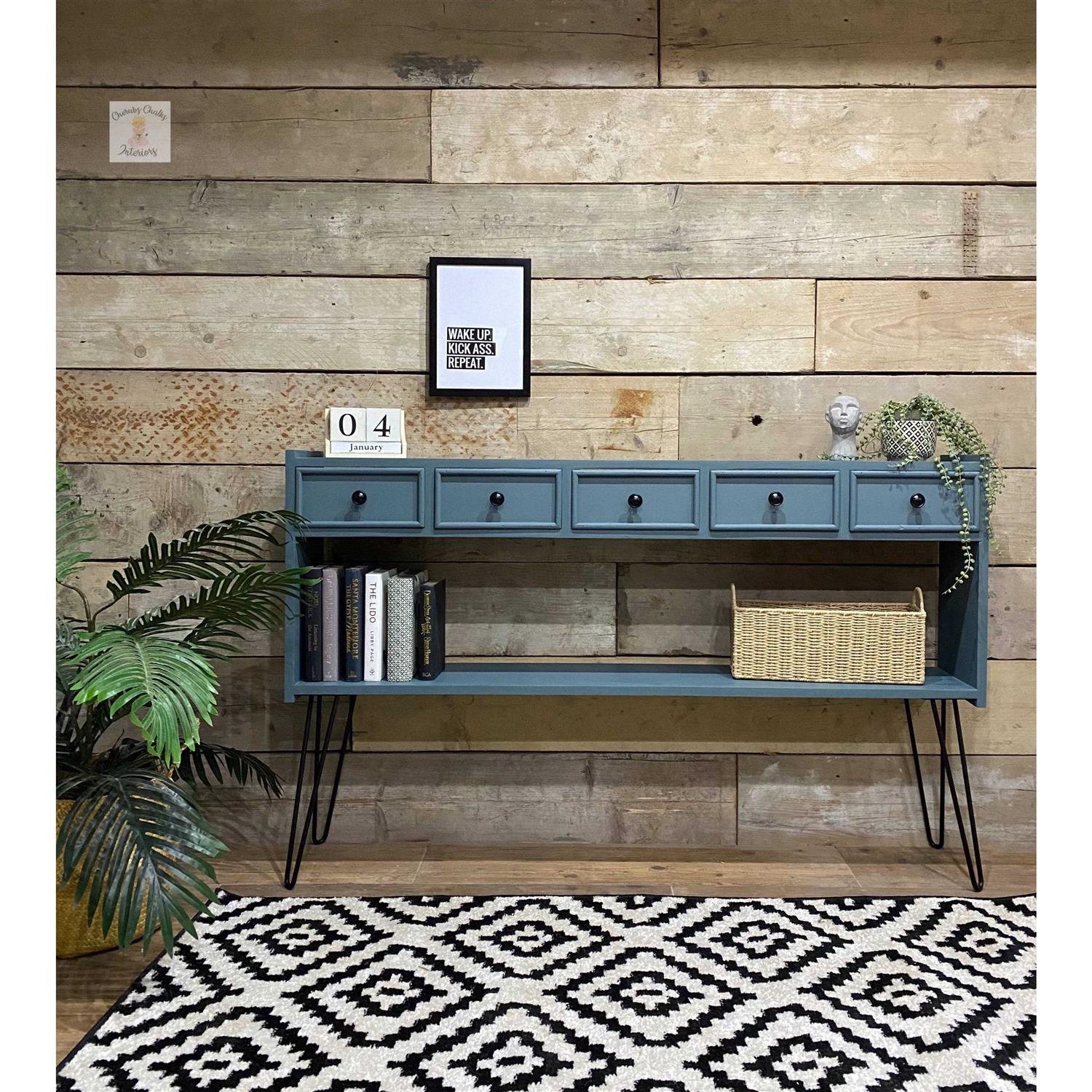 Introducing Stormy Seas, a captivating blue-gray with green undertones, reminiscent of choppy ocean waves and rain clouds. Embrace the calming qualities of this rich color. Bring balance to your beach bungalow or mid-century modern home with Stormy Seas. Dress it up or down to suit your style effortlessly. Experience the perfect chalk paint for your painted furniture, cabinets, and DIY projects. Our chalk mineral paint adheres flawlessly to various surfaces, including wood, metal, plastics, brick, stone, glass, concrete, and more. Unleash your creativity and let Stormy Seas transform your space into a tranquil retreat. Discover the endless possibilities with our exceptional chalk paint. For optimal results, consider using our White Lightning cleaner to prepare your surfaces for a flawless finish. Dixie Belle Paint can be mixed and matched to create any custom color you can imagine!
