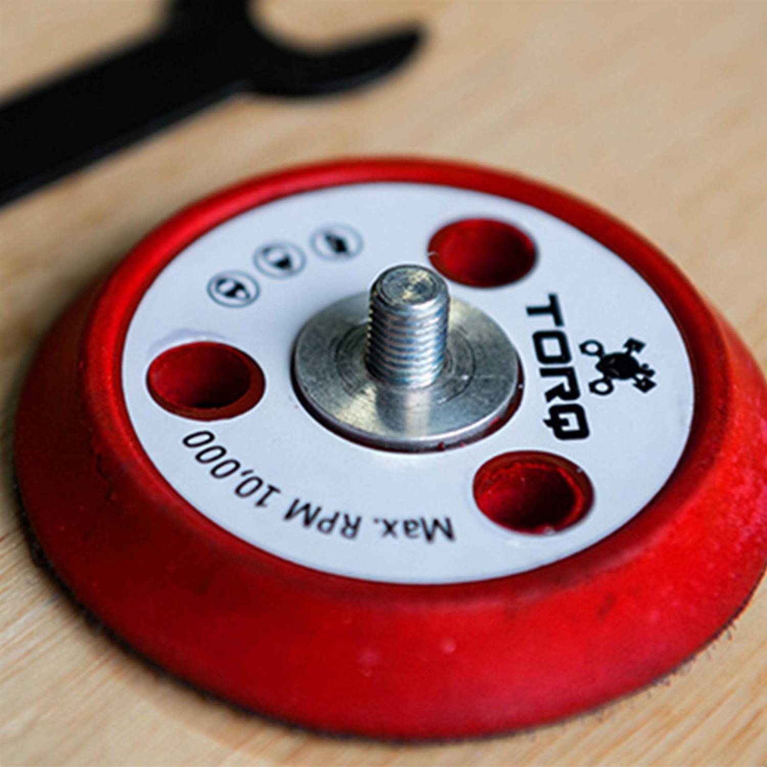The Chemical Guys TORQ R5 Dual-Action Backing Plate is the most advanced backing plate for dual-action machines on the market! Designed using the most innovative custom high-density foam for a durable backing that is tear-resistant, the TORQ R5 Red Backing Plate is built to last. Not only is the backing plate durable but after rigorous testing, Chemical Guys specially engineered the TORQ R5 Dual-Action Backing Plate to contain a revolutionary R5 cold air induction system. This cold air induction system spools in cold-air and releases it into the pad during polishing to reduce heat caused by surface friction. The TORQ R5 Dual-Action Backing Plate is designed with special mesh-hardened ABS plastic and ultra-high density flexible foam to resist any wear and tear from performing extended polishing jobs. The special mesh-hardened ABS plastic is very durable and allows the high density foam to flex enough to contour to the bends and curves of your surface. The low-profile of the TORQ R5 helps protect surfaces – especially when working close to vents, hood scoops, spoilers, and fenders. The TORQ R5 Dual-Action Backing Plate utilizes an adaptive high density foam that bends, molds, contours, and adapts to variable surfaces with great ease to deliver perfect results every time. The innovative design of R5 Backing Plate was aimed for the professionals, factories, and OEM grade so it can resist the harshest use and abuse. The double body hook-and-loops durability ensures that no matter what make, style, or variation of pads you use it will securely and safely adhere to the TORQ R5 Backing Plate. All of the TORQ R5 Dual-Action Backing Plates are reinforced with Inner Stability-Struts, these stability struts are constructed utilizing steel struts that are bolted into the center hub to give the backing plate stability while maintaining a great even surface for pads.