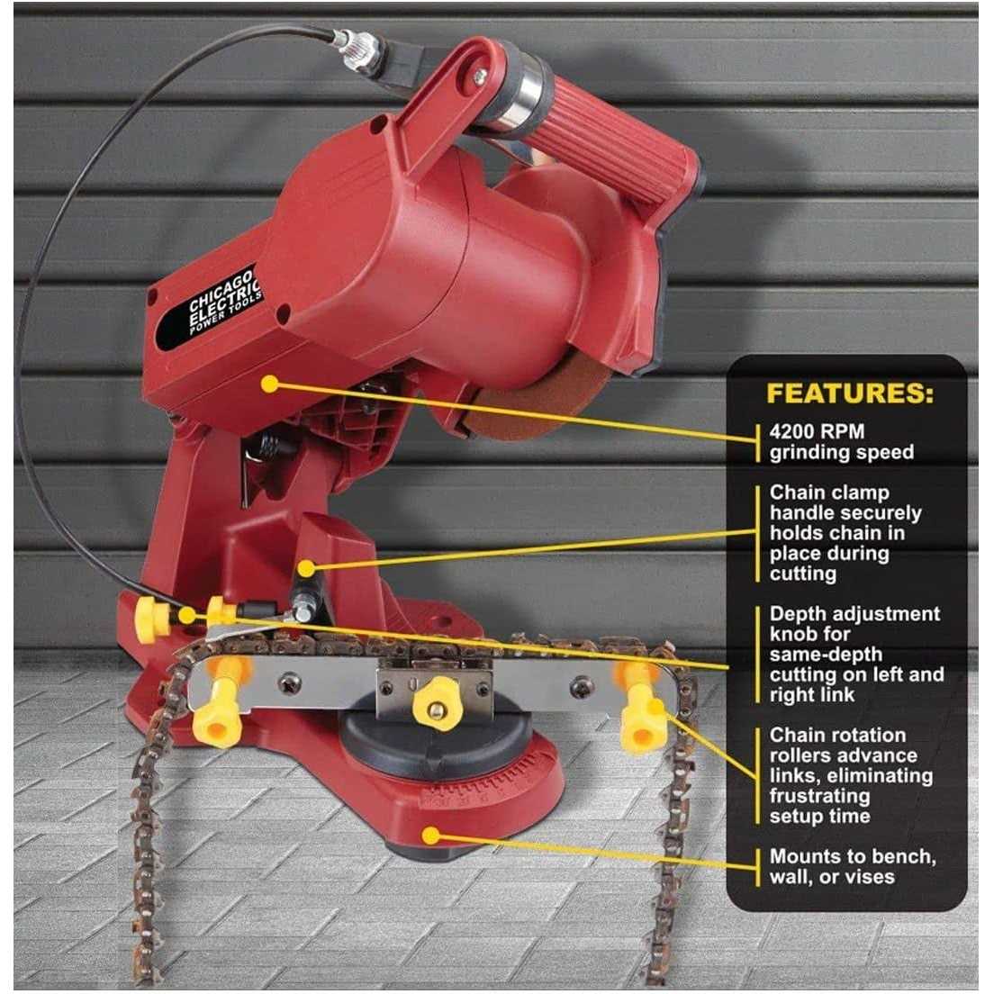 Chicago Electric Electric Chain Saw Sharpener Wall, Bench or Vise Mount