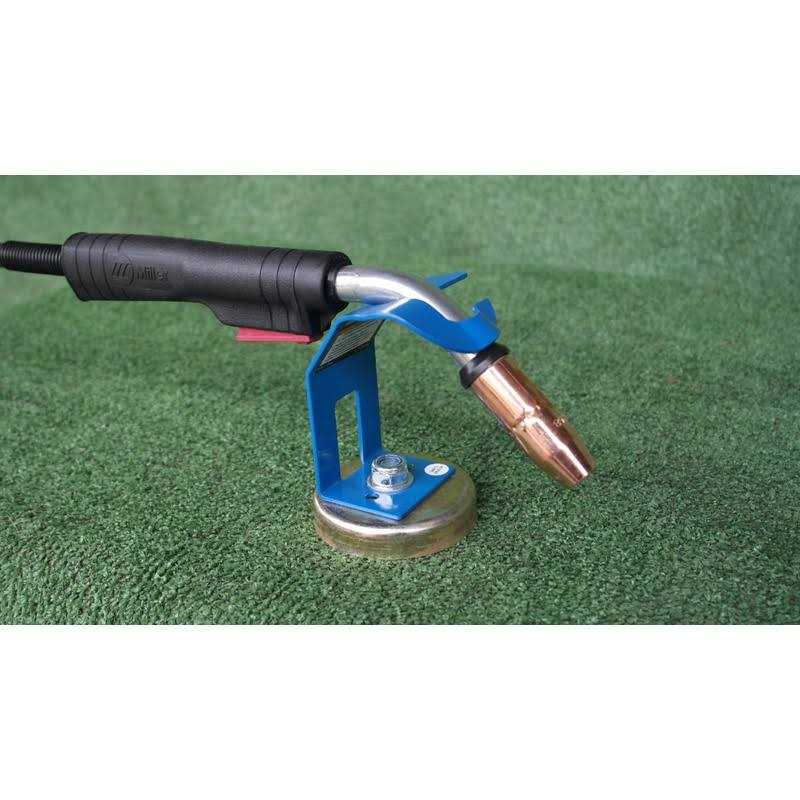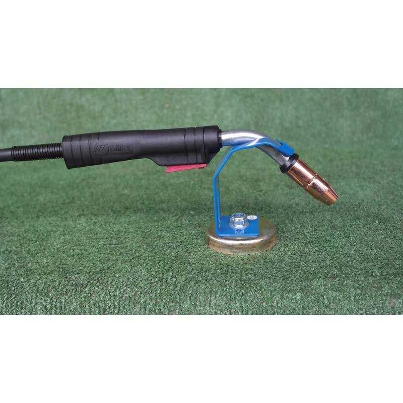 This magnetic MIG torch stand keeps your MIG torch safe from being damaged when you’re not using it. The torch stand’s powerful 2-3/4 in. magnet clamps to your workbench or the side of your welder and can work either vertically or horizontally. The torch stand has a durable enamel finish with a zinc coated base for added durability.
