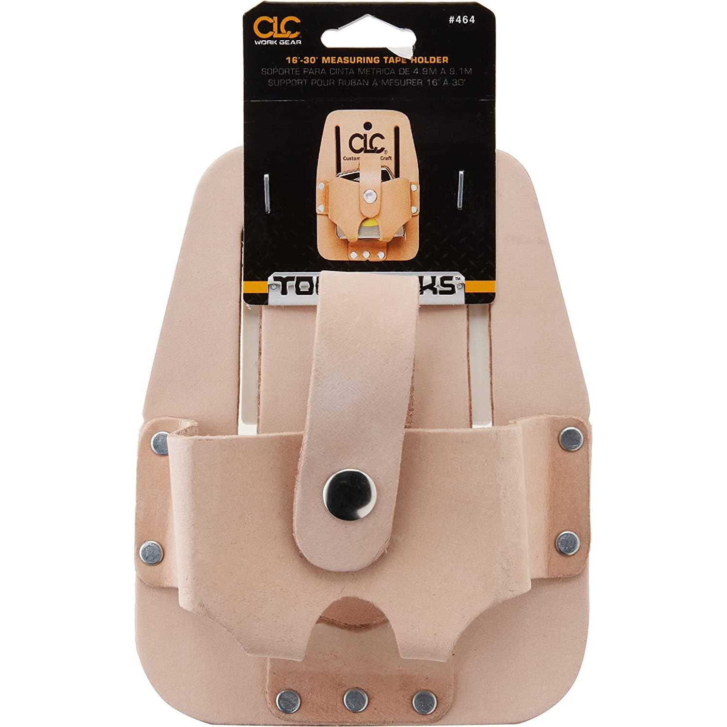 Top grain leather Molded leather retains shape Safety snap included Easy out keel Fits belts up to two and three quarter inch wide Some tools deserve special treatment. CLC 464 tape measure holder keeps it close at hand.