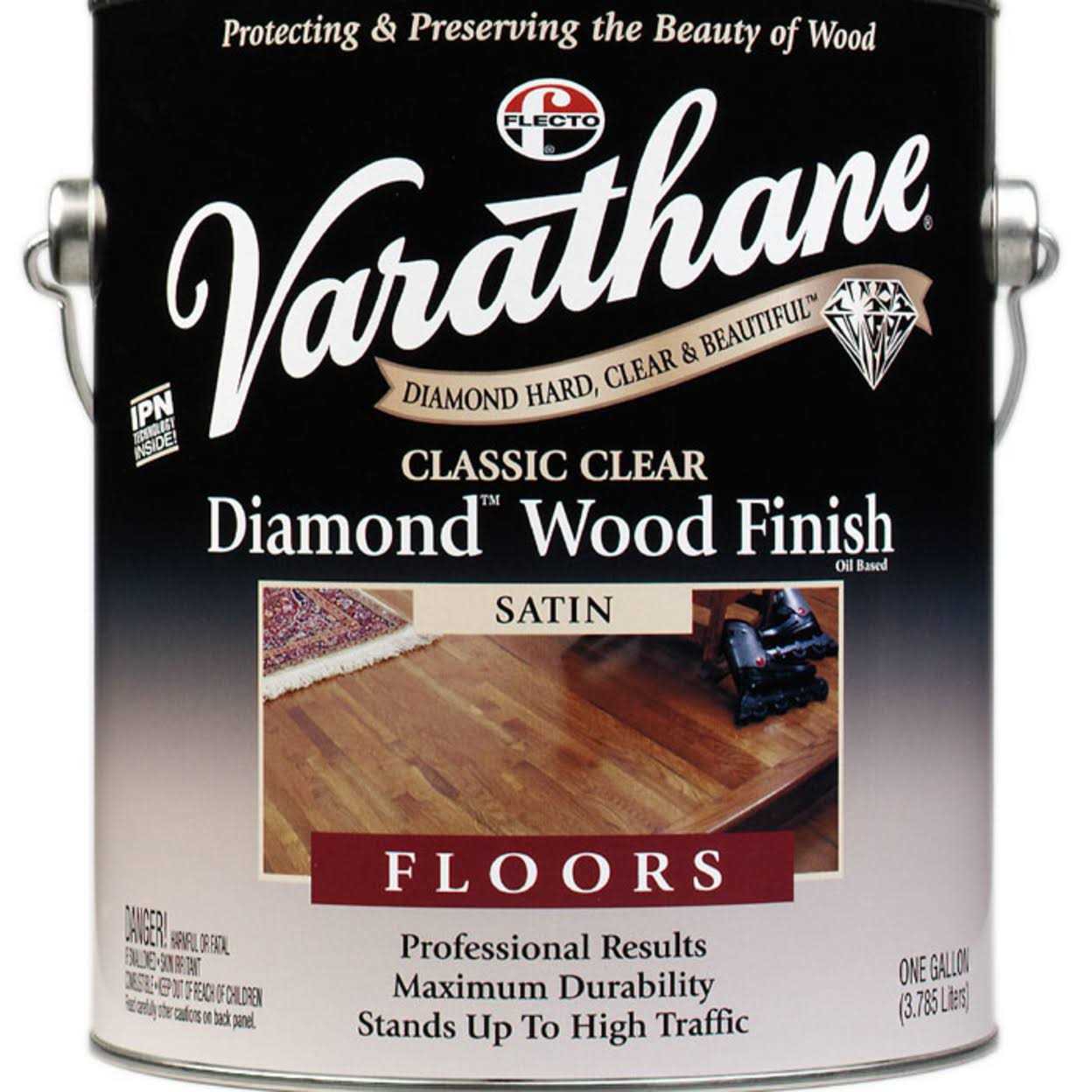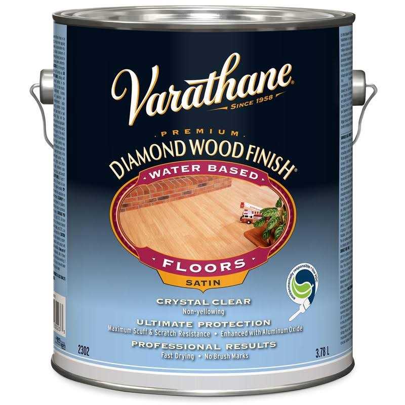 Varathane Premium Diamond Wood Finish Interior provides protection for your wood that is diamond hard diamond clear and diamond beautiful. Varathane Premium Diamond Wood Finish Interior is specifically developed to enhance the natural beauty of wood while providing the best scratch and stain resistance available. Varathane Diamond Wood Finish for Floor provides the ultimate protection for your wood floors. Varathane Diamond Wood Finish for Floor provides the best scuff and scratch protection available as proven by independent lab testing. A crystal clear finish that never yellows Varathane Diamond Wood Finish resists water alcohol and household chemicals AND is low odour and environmentally friendly.