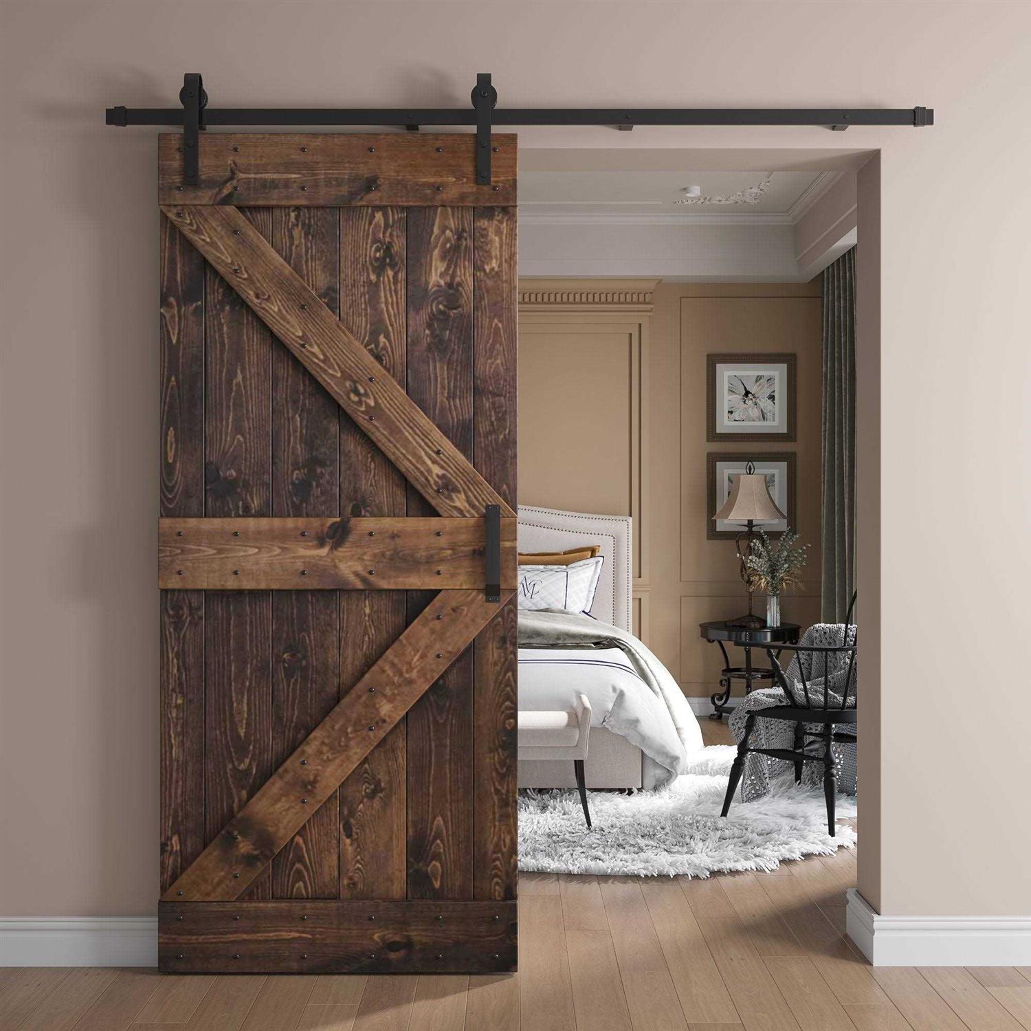 COAST SEQUOIA fine-select premium pine wood sourced nationally from the North America. Each piece has unique and natural wood grain. Every single barn door is hand-stained to protects and reserves the beauty of the wood. Come equipped with a heavy-duty sliding hardware kit made out of powder-coated steel, which increases its longevity and durability.T he barn door best fits in dining room, bedroom, living room, and other commercial area.