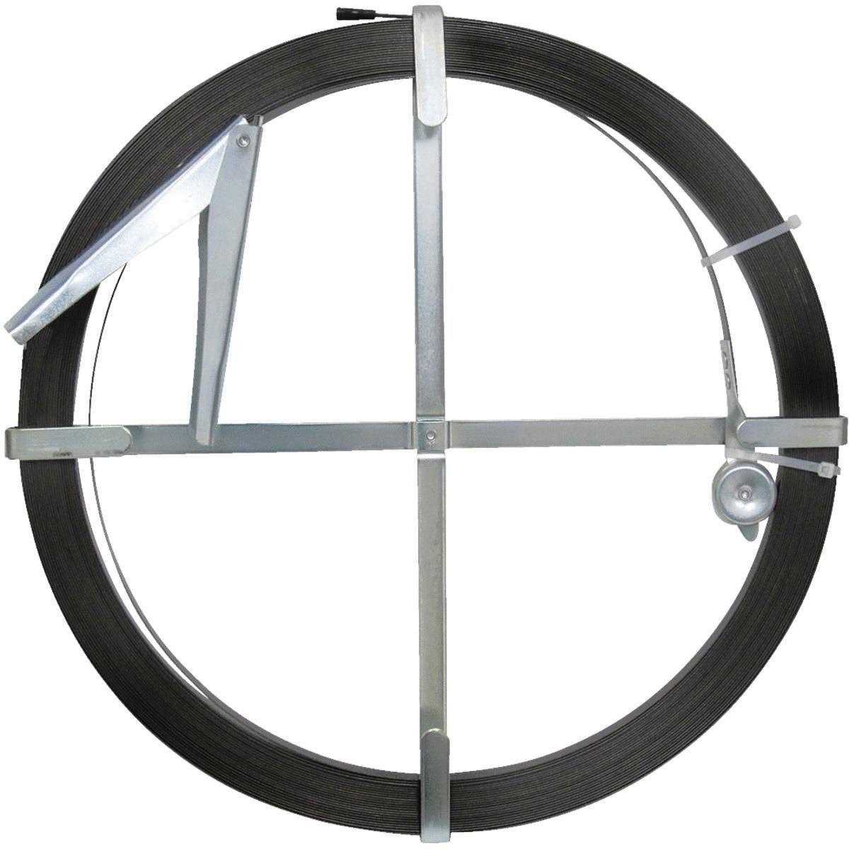 Flat sewer rods steel rental 3/4 feet wide x 1/16 inches thick lgth 50 feet Oil tempered, spring steel with spear point roller ball head. Two piece adjustable grip handle for easy cleaning of lines. Cleans all sizes of sewer drain pipes.