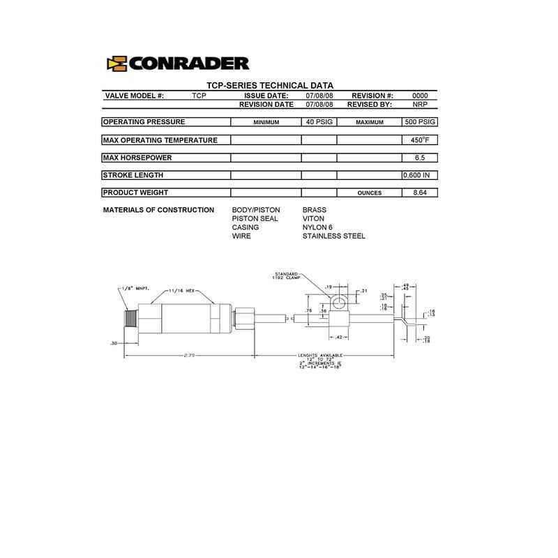 Throttle controls are designed to control the engine speed of gasoline and diesel engine driven compressors. The throttle control keeps the engine at the operational speed until it receives a pressure signal, it then throttles down the engine until the pressure signal is released. Throttle controls must be used in conjunction with a pilot valve which controls the pressure signal. The brass cylinder end of the throttle control is screwed directly into an unloader device’s unloader port through an 1/8″ NPT Connection. The Z bend at the end of the cable is inserted into the throttle arm and mounted at the throttle plate of the engine. The cable whip is permanently lubricated and self cleaning. This particular style throttle control cable is used on compressors with external unloading devices and engines 6.5hp and below.
