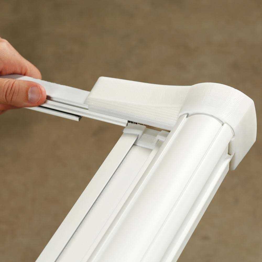 COOL Retractable Screen – Single Standard Height (for 6’8 inch tall doors) with White Frame – Fits Openings 32 inchx36 inch Width x 80 inch-81 inch Height with fiberglass mesh featuring subtle safety stripes that provide faint visual cues to help prevent walk-throughs. Ergonomically designed latch/lock handle offers simple and secure one-hand operation. EZ-Glide System for steady and smooth operation. Quick 30-minute installation based on standard door application and average DIY skills. Quick-snap track requires no cutting for standard size applications.