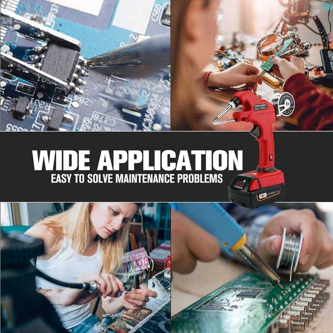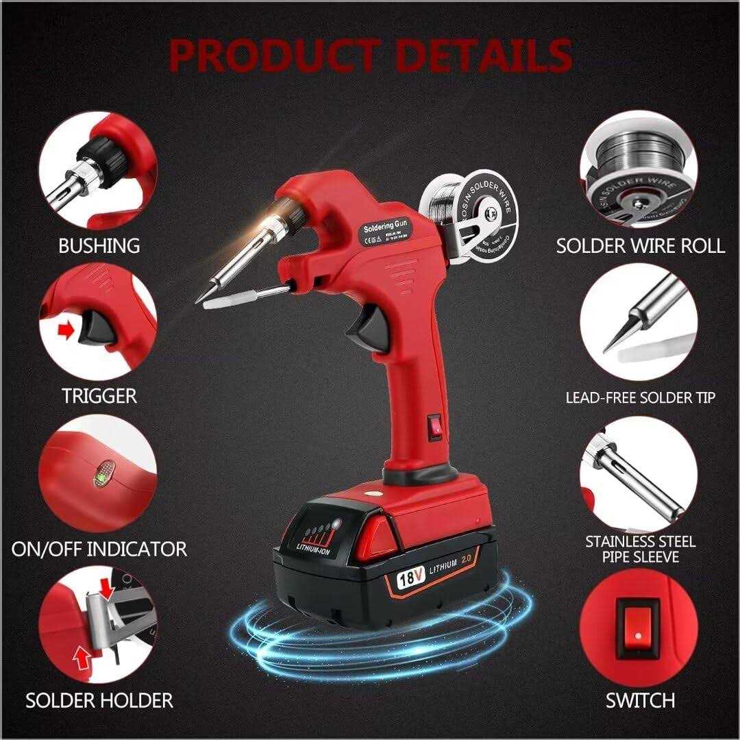 【Compatibility With for Milwaukee M18 Battery Models】BATTERY CHARGER NOT INCLUDED! HLiePiHa Cordless LED work light powered by Milwaukee M18 18V battery model: M18, 48-11-1811, 48-11-1840, 48-11-1841, 48-11-1850, 48-11-1852, 48-11-1815, 48-11-1820, 48-11- 1822, 48-11-1828, 48-59-181, 48-59-1850, C18B, Li18, M18, M18B, M18B2, M18B4, M18BX lithium-ion Battery soldering gun ; (2A Battery Included) 【Cordless & Fast Preheating】—Our Soldering Iron Kit are 30W 18-24V battery powered soldering kit adopt ceramic thermal element, takes only 30s to warm up, rapid heat-up, fast welding, up to 450°C, constant temperature, greatly save your working time; Wireless design, No cord, No limits! Conveniently use it anytime,anywhere! For Milwaukee M18 18V Max Li-ion Battery powered for the soldering gun, plug in your CORRECT battery will maintain the soldering iron stand without the bracket; 【Wide Application】— The wireless soldering iron tools meet a variety of DIY needs, such as welding circuit board, appliance repair, jewelry and metal headdress making, computer; The soldering kit is good choice for welding circuit board, Home DIY hobbyists, beginner studying electronics, appliance repair, jewelry welding. Excellent Gifts for Fathers Day and Christmas Day! – Product Specification: – br – NOTE: BATTERY CHARGER NOT INCLUDED(PLEASE BUY WITH CAUTION) – br – br – COLOR: Red&Black – VOLTAGE: 18V/20V Max – WORKING POWER: 30W – BATTERY CHEMISTRY: Llithium-ion Battery – PRODUCT SIZE: 21.5*7*20.5 (8.46*2.76*8.07inches) – WORKING TEMPERATURE: Up to 450°C – TIN WIRE DIAMETER RANGE: It can use tin wire with diameter range of 0.8mm-1.2mm – SOLDER WIRE DIAMETER: diameter 1mm – SOLDER WIRE WEIGHT: 50G – PREHEAT TIME: 30s – MUZZLE: Aluminium muzzle – Box include: 1* soldering gun, 1*50g soldering wire, 1* Use Manual, 1*2A battery – br – br – Indicator Design & Non-slip Rubber Handle: – The cordless Soldering Iron Kit with a LED on/off Indicator, you’ll always know when your Soldering Iron is – in ready to use and when it is off. With Non-slip handle, allow you to easily hold the handle. – br – br – Include 50G Premium Soldering wires: – Package includes 50g of diameter 0.04″ welding wire, the soldering wire has antioxidant for a long time and – good weld ability, melts quick and clean, flows smooth. – br – br – M18, 48-11-1811, 48-11-1840, 48-11-1841, 48-11-1850, 48-11-1852, 48-11-1815, – 48-11-1820, 48-11-1822, 48-11-1828, 48-11-1860, 48-11-1865, 48-11-1880, – 48-11- 48-59-181, 48-59-1850, C18B, Li18, M18, M18B, M18B2, M18B4, M18BX and more; – br – br – br – br – Warm Tips: – The soldering gun works by using high temperature, the nozzle area and the iron tube is very hot(up to 450°C), man do not touch it; – Place the soldering gun up support when it not use; – Switch off the soldering gun after you finish your work; – Store the soldering gun until it has completely cooled. – br – br /p